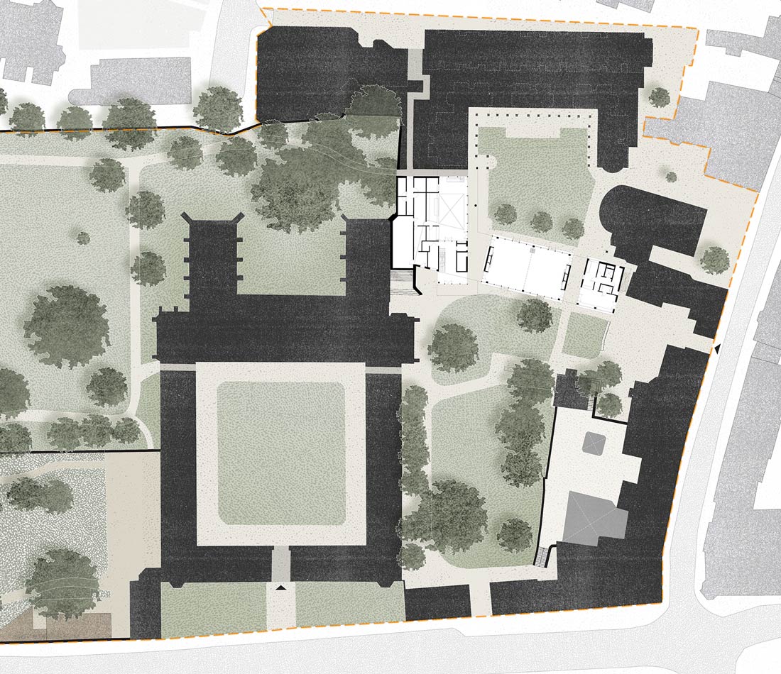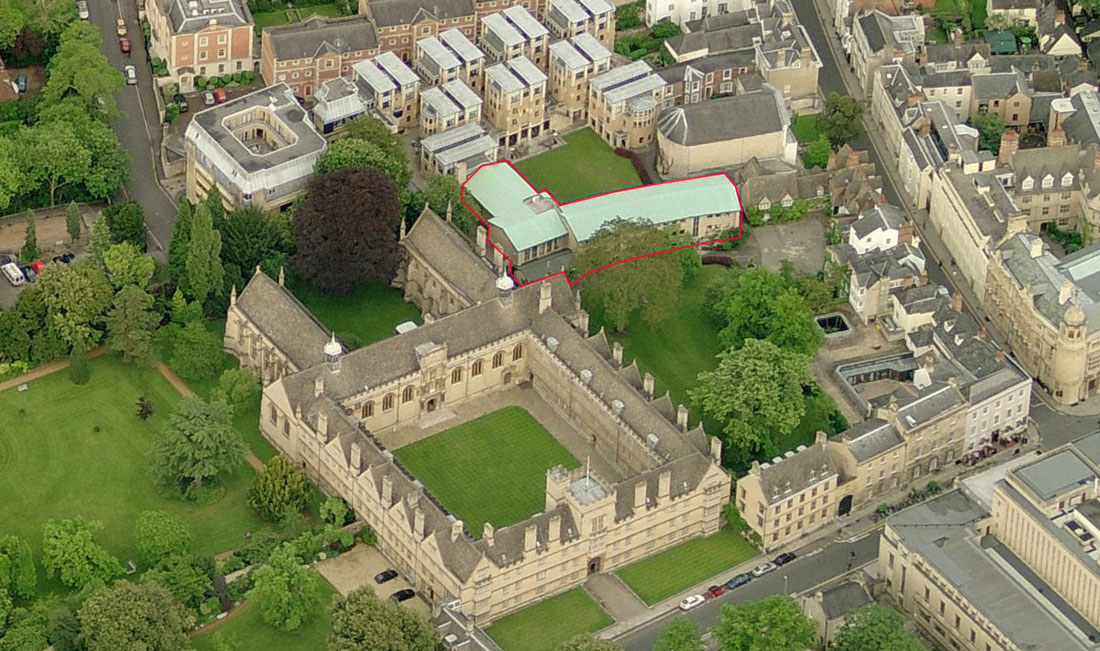 Invited competition to design a new student building for Wadham College, Oxford. The new building was to replace a smaller and non-accessible 1950s block in Back Quad, at a position between the original, gabled-ended, early 1600s buildings and a series of 1970s-1990s additions.