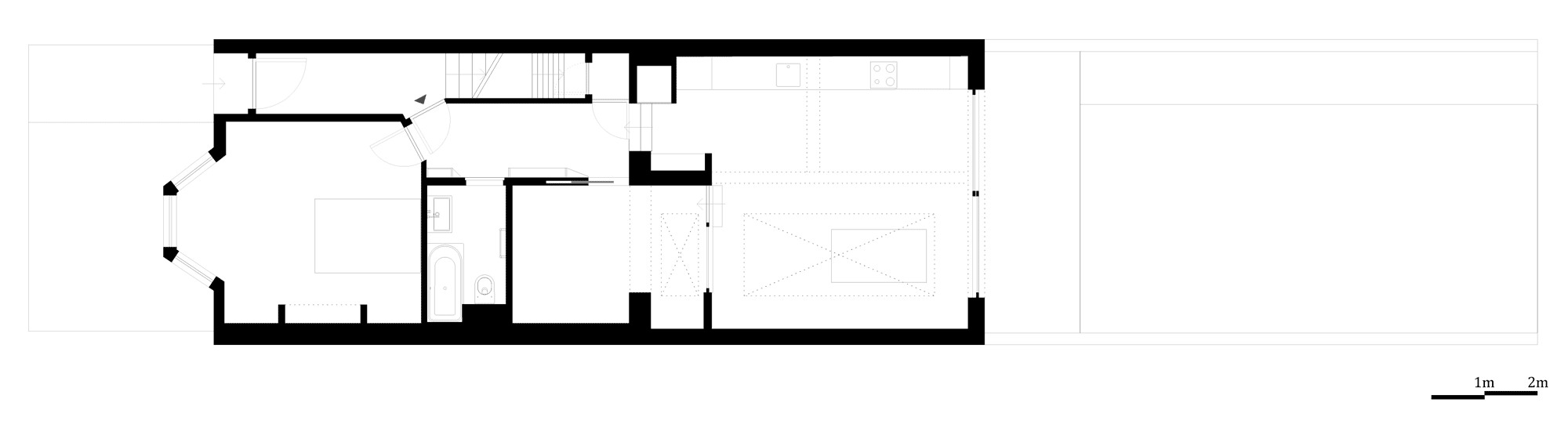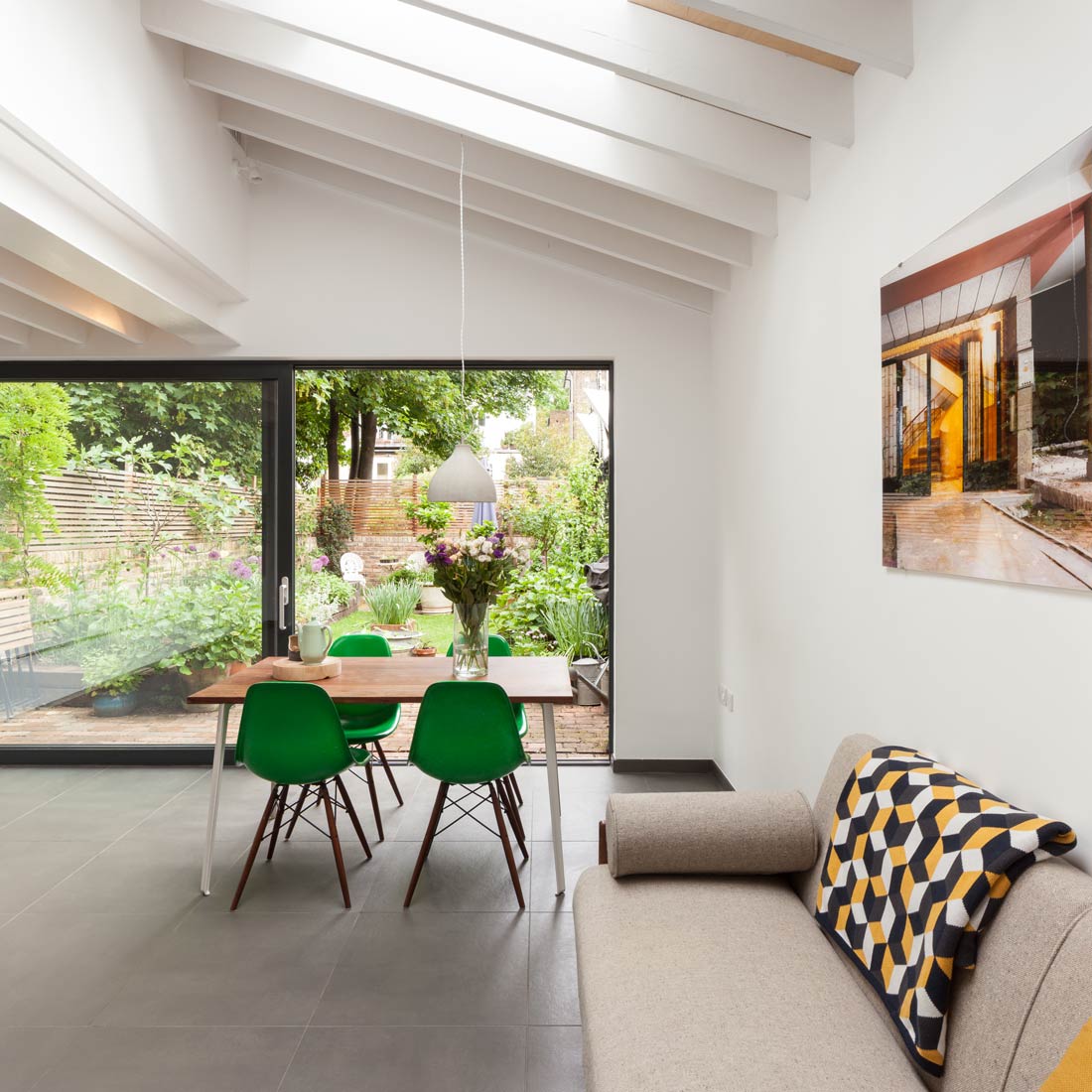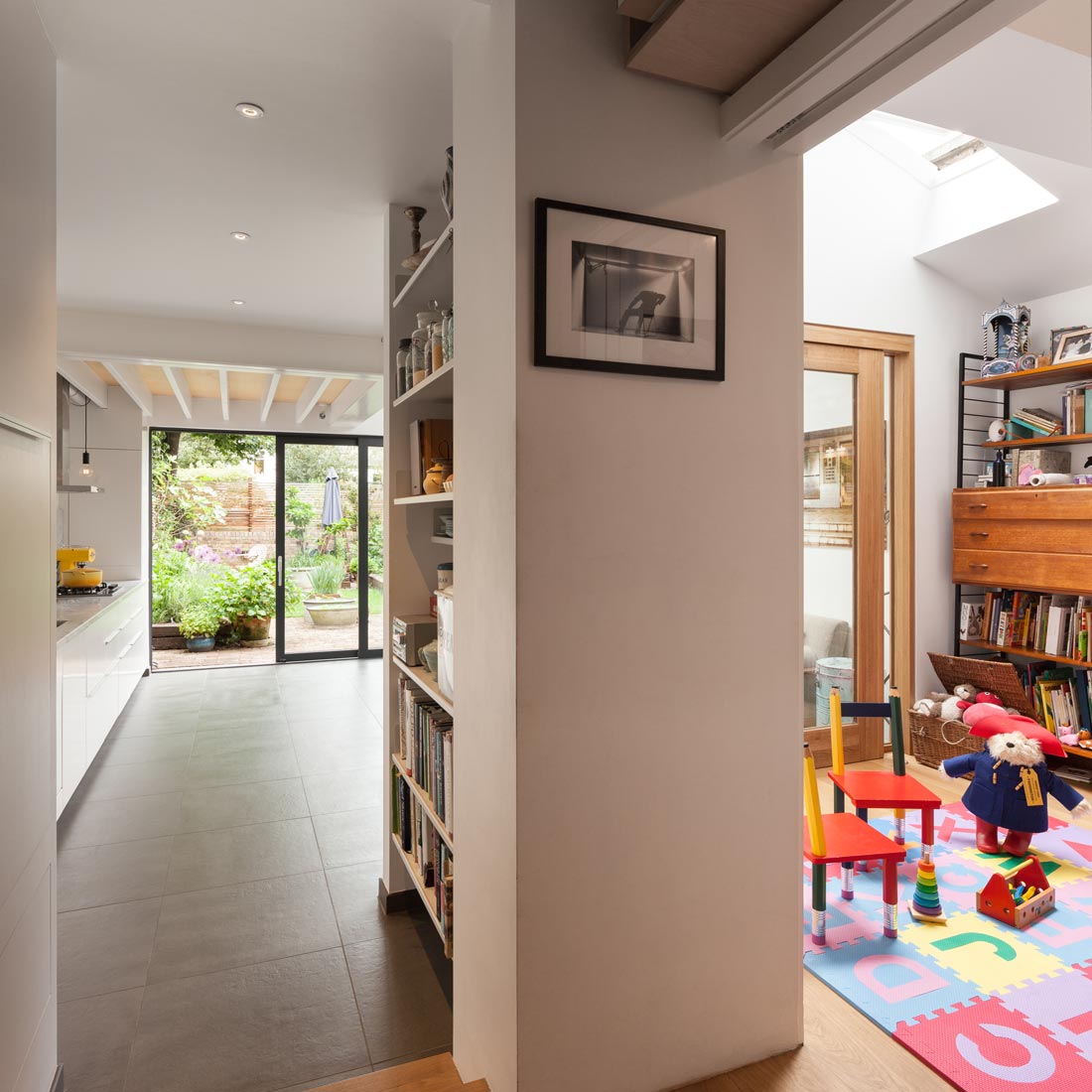 A new extension and full refurbishment of a ground-floor flat in a Victorian terraced house in Finsbury Park. The new building replaces an existing side-return extension and adds an additional 20m² to form an open-plan kitchen and living space, and enables a second bedroom to be created, making the flat suitable for a young family.