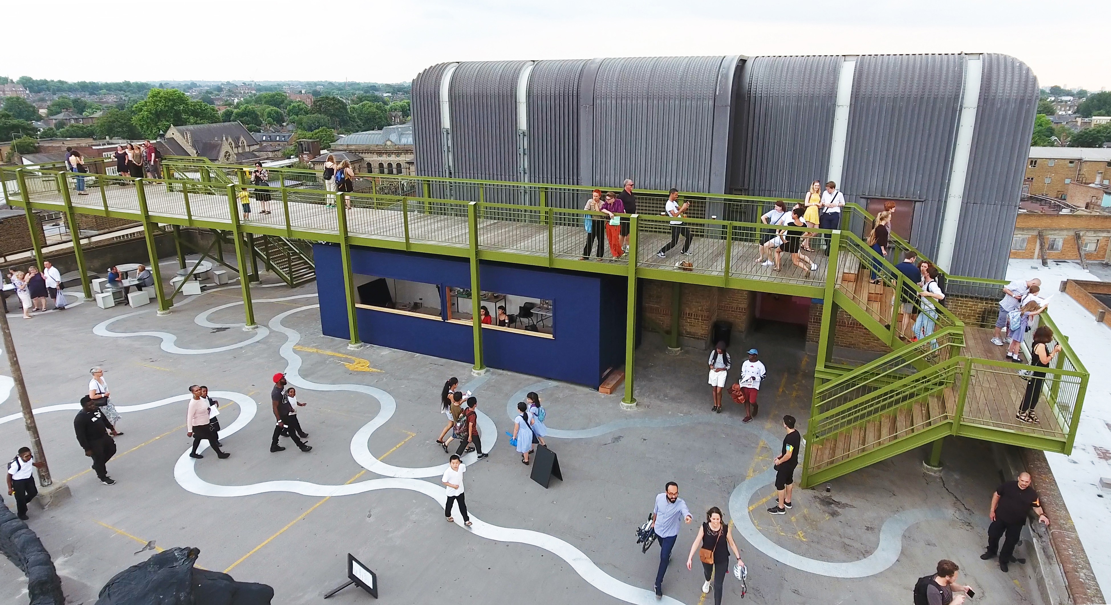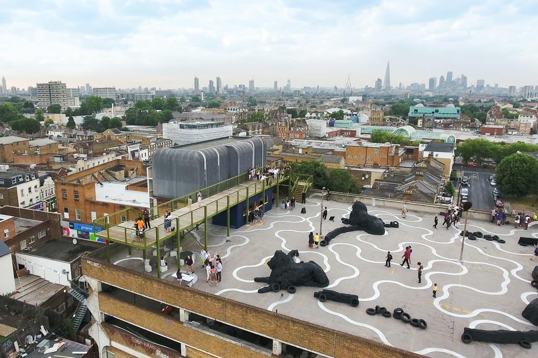 Described by Wallpaper* as one of the ‘top buildings that shaped culture in 2017’, Peckham Observatory is a viewing platform that spans the top, open deck of Peckham Multi-Storey Car Park. The Observatory makes the most of the car park’s spectacular views over London, provides a different perspective on the art beneath it and a new way for people to enjoy one of London’s most exciting cultural destinations during the summer months.