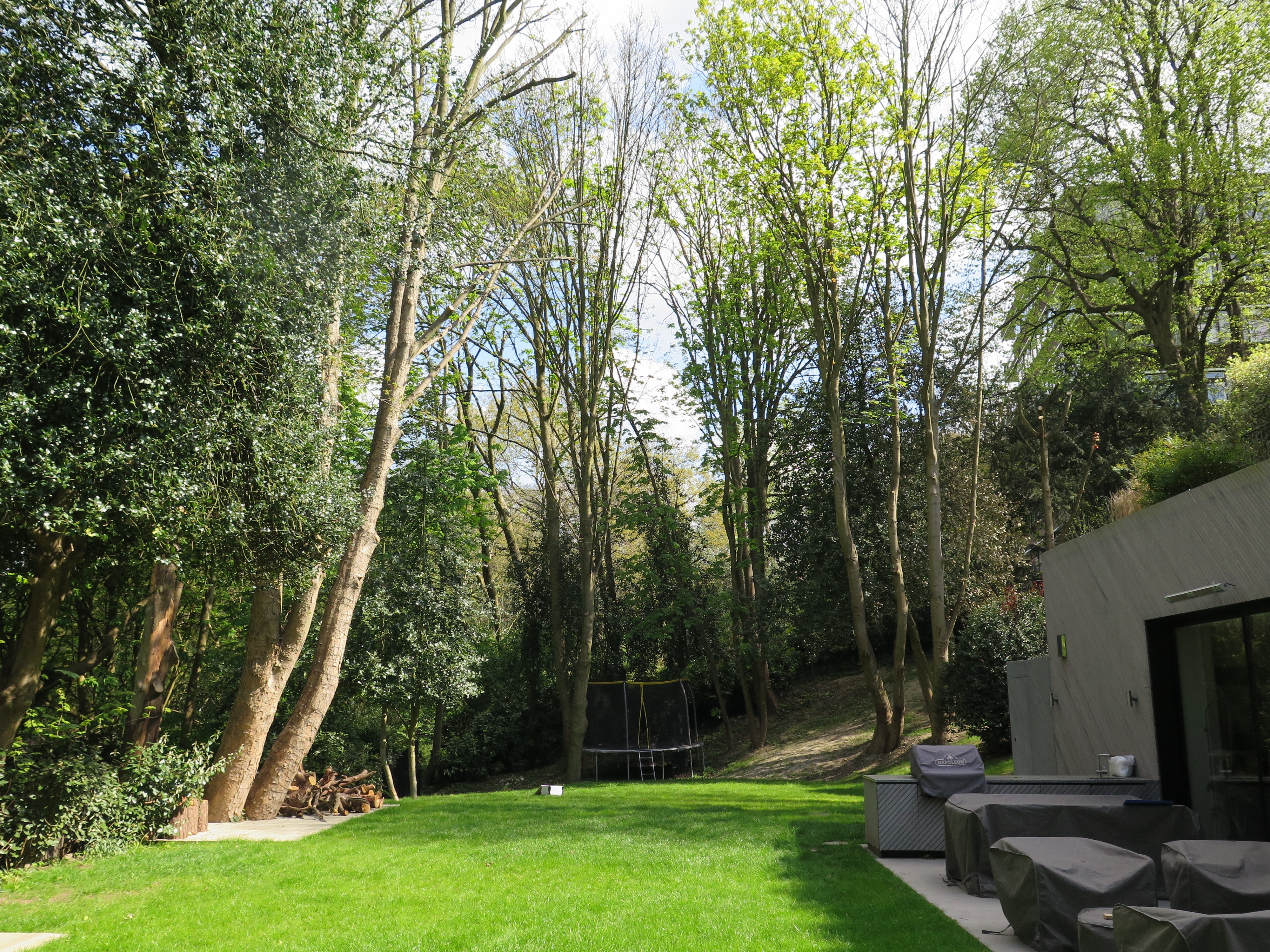 The garden had a number of tree preservation orders and was in a conservation area; obtaining planning permission was a notable achievement that required extensive coordination with ecology and tree experts.