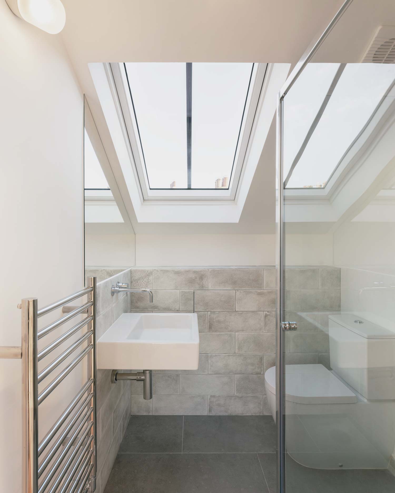During the design process the final use of the loft space remained ambiguous – it wasn’t clear whether this space would ultimately be the master, or the second bedroom and the client wanted to reserve decision until completion. To retain this flexibility the door to the loft was located at the lower landing level, effectively creating a sense of privacy for the loft as its own world and ensuring that at loft level the room could feel as generous as possible.