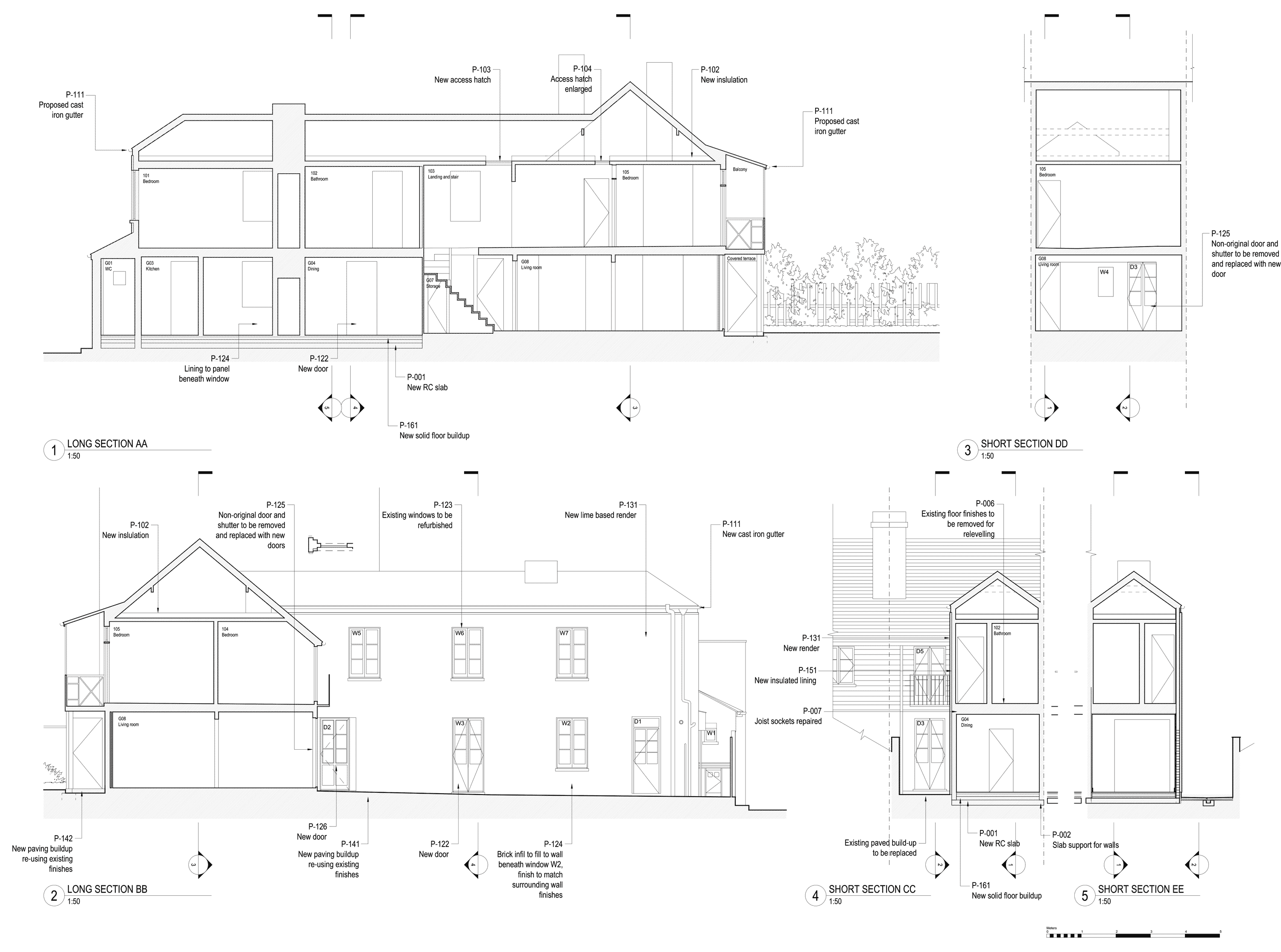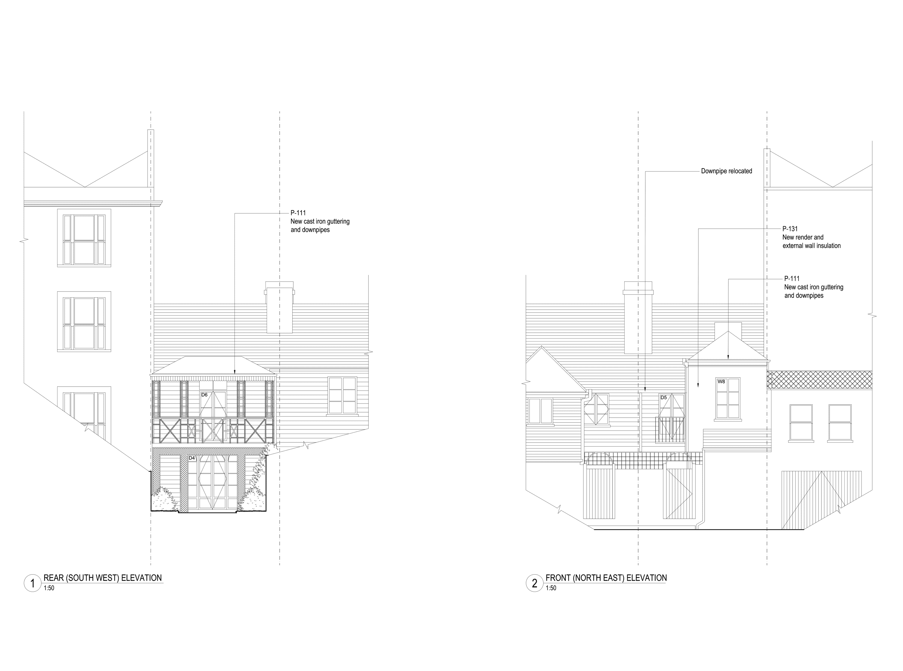 Energy use was substantially improved by adding external wall insulation to the bedroom wing, with careful detailing around windows and roof eaves, and careful justification in the listed building application.