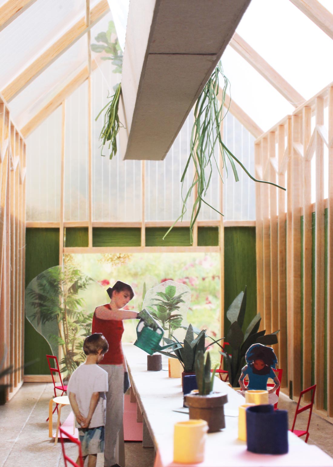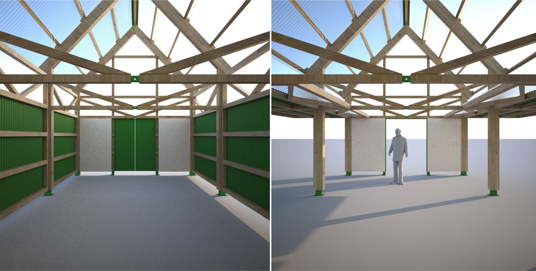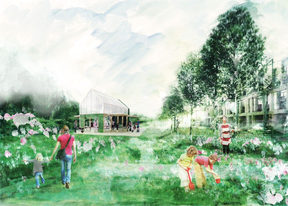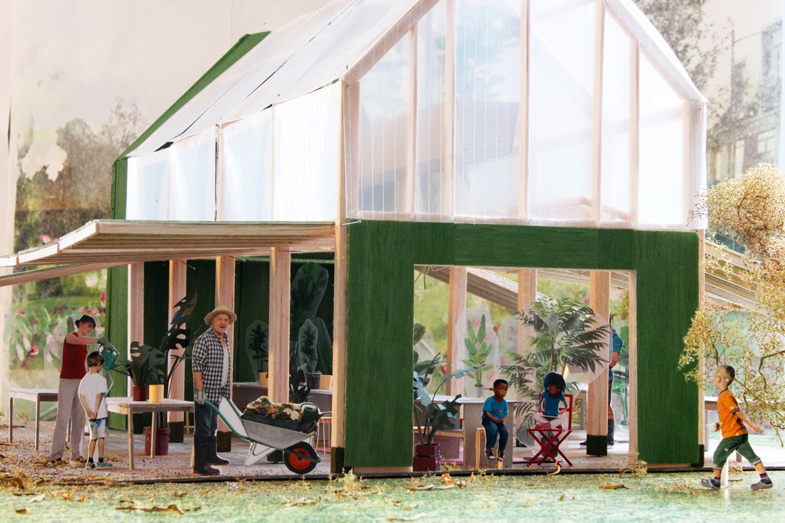Competition-winning entry for Grosvenor, for a public art commission in Barton Park, Oxford. Barton is an Oxford suburb which used to be one of the most deprived areas of the city but is now being redeveloped with new housing. We responded to an open call for public art proposals with the idea of creating a community centre-cum-potting shed.