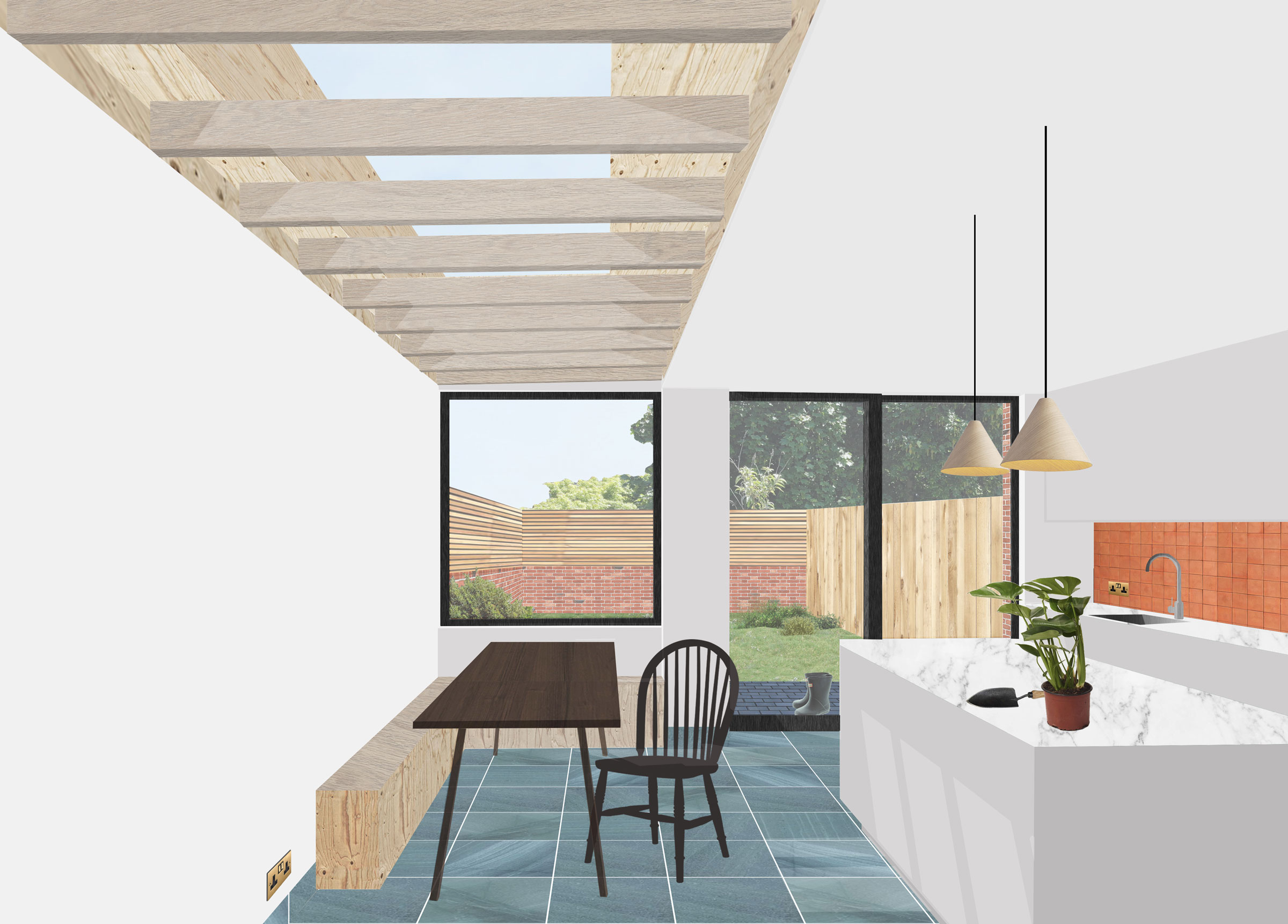 At ground level the project includes a generous new kitchen extension to create far more space for family life and greatly improve the connection to the garden.