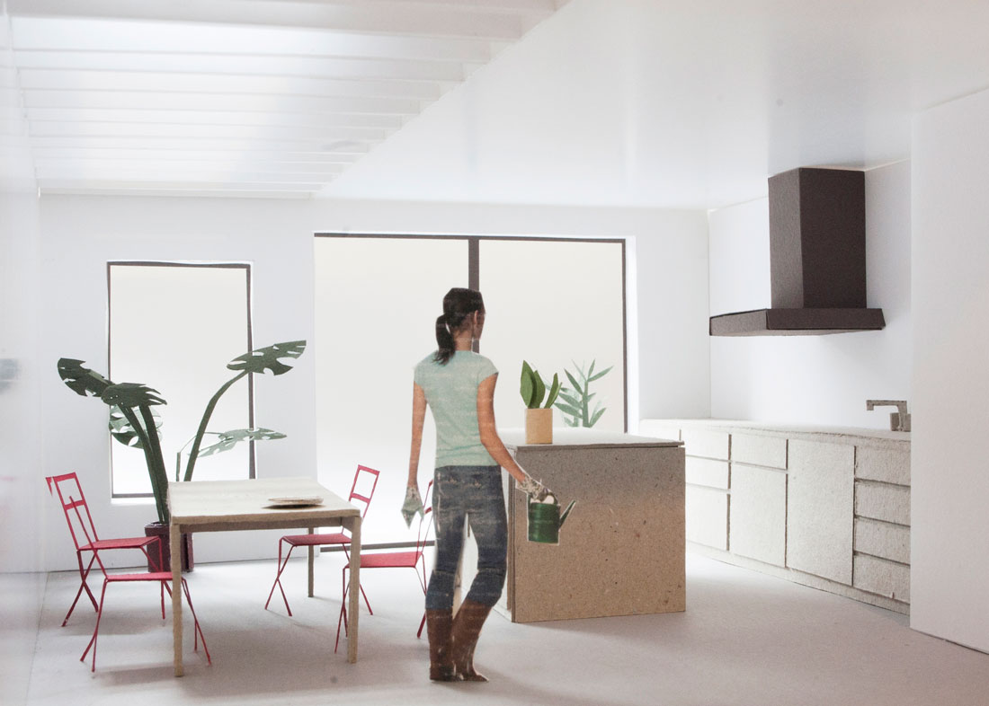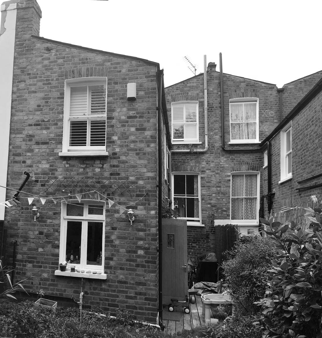 The elevation has been arranged to create a generous connection to the garden from kitchen and dining spaces without compromising privacy and creating a sense of being overlooked by surrounding flats.