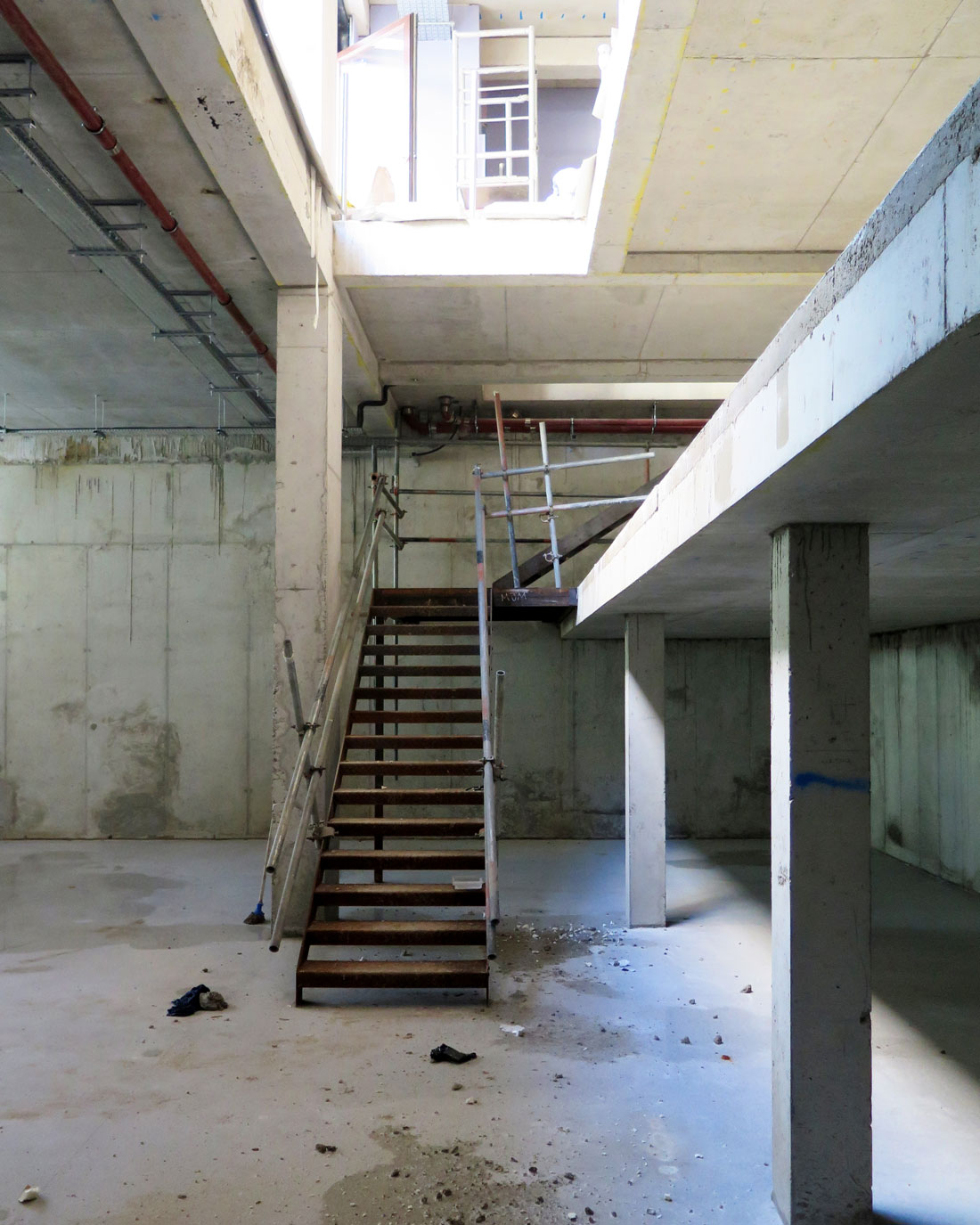 Plans for the fit-out include connecting all levels with a new blackened steel staircase that descends from the smaller ground floor entrance and office space, down to the edit suites on lowest floor.