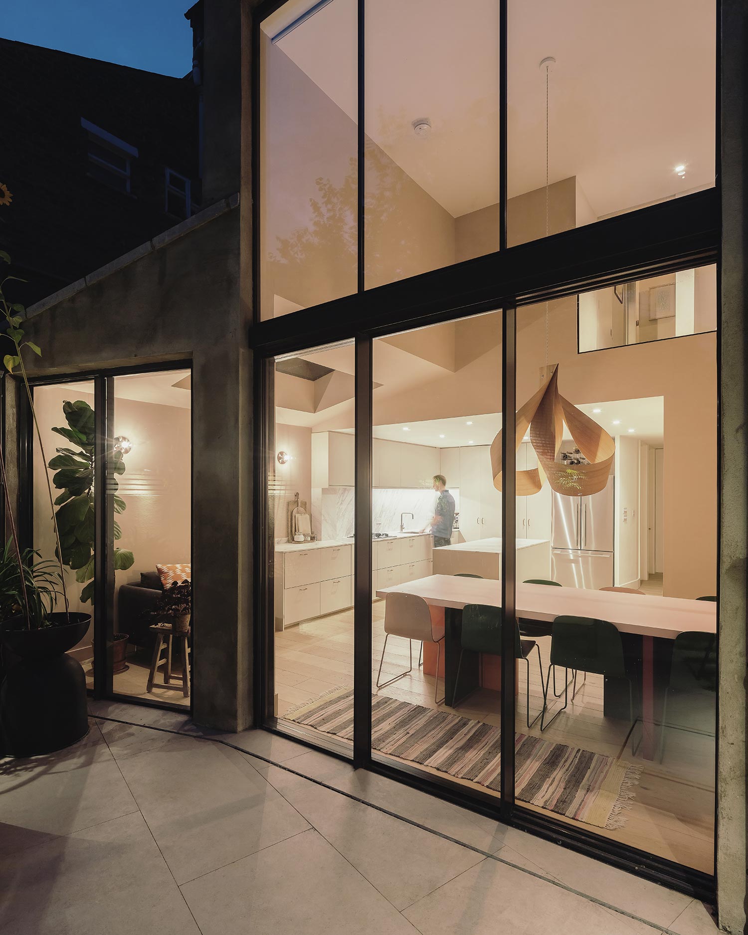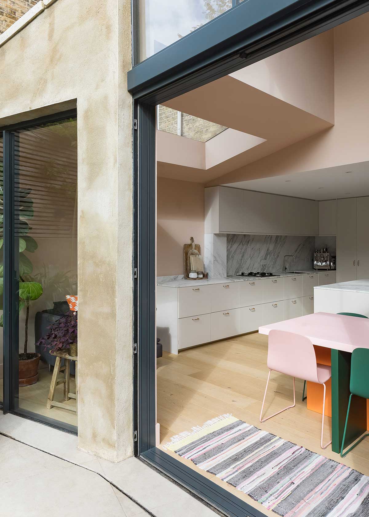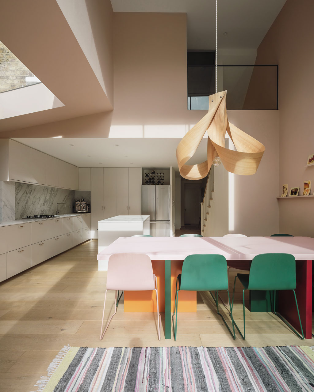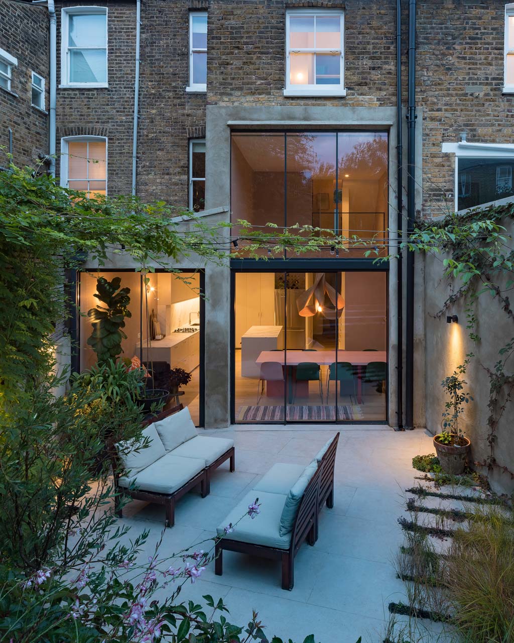 A side-return rear extension creates valuable extra space for the new living area, and a light-filled double-height space doubles as circulation for stairs.