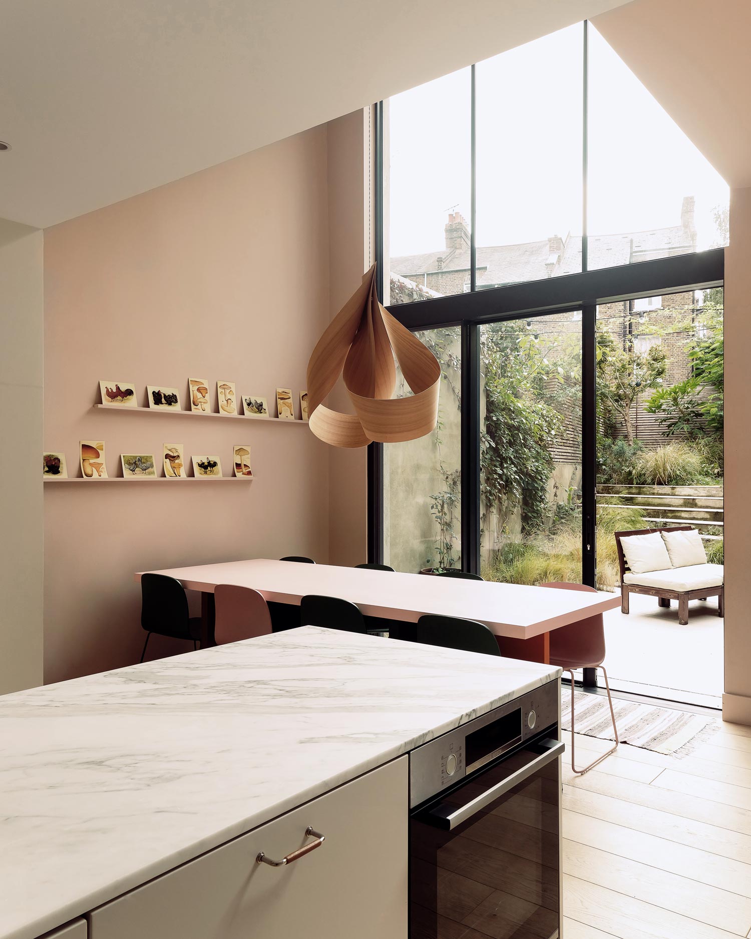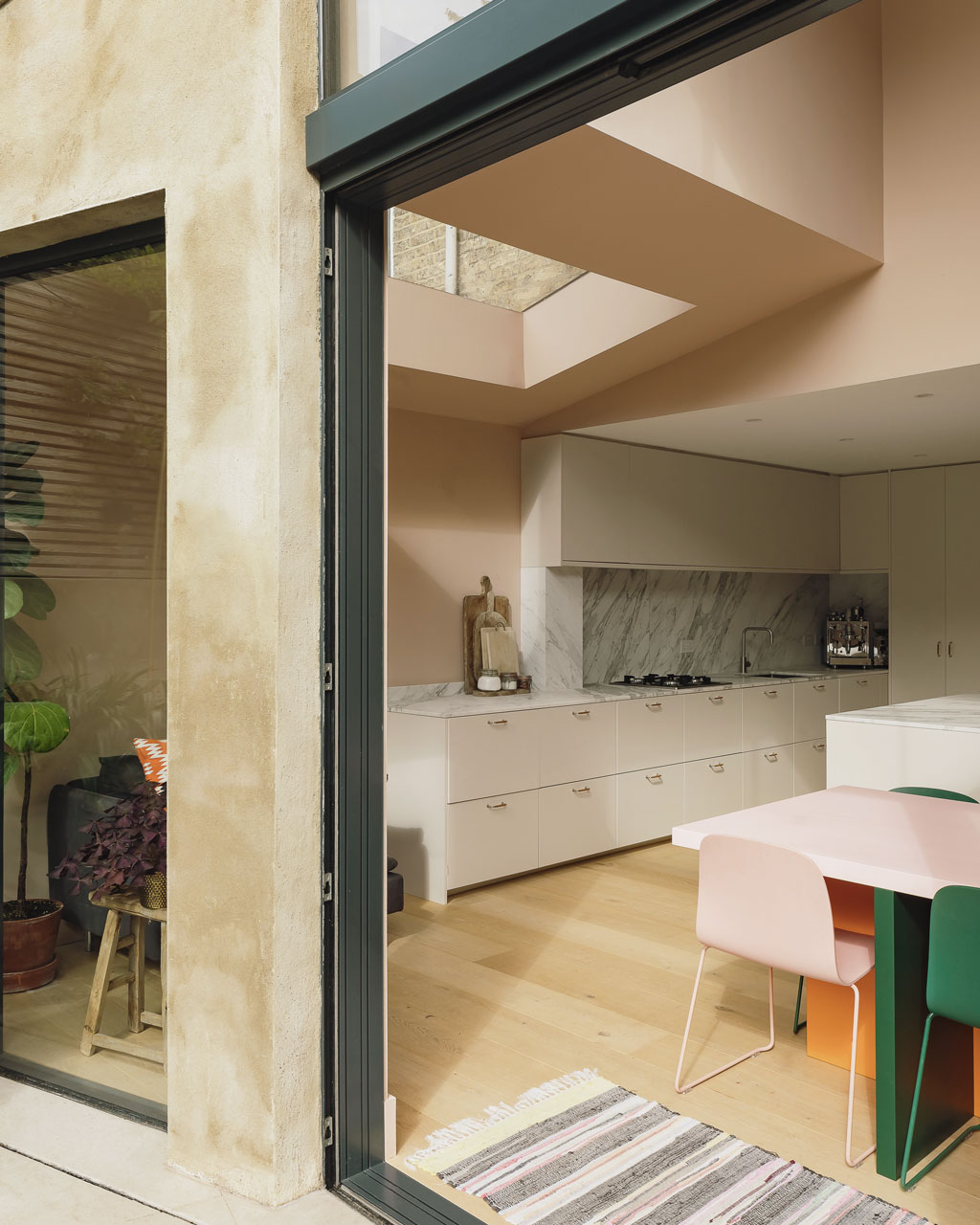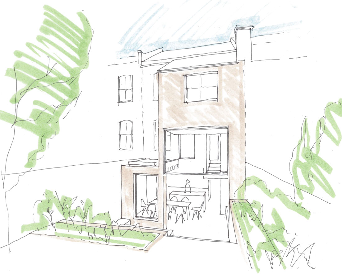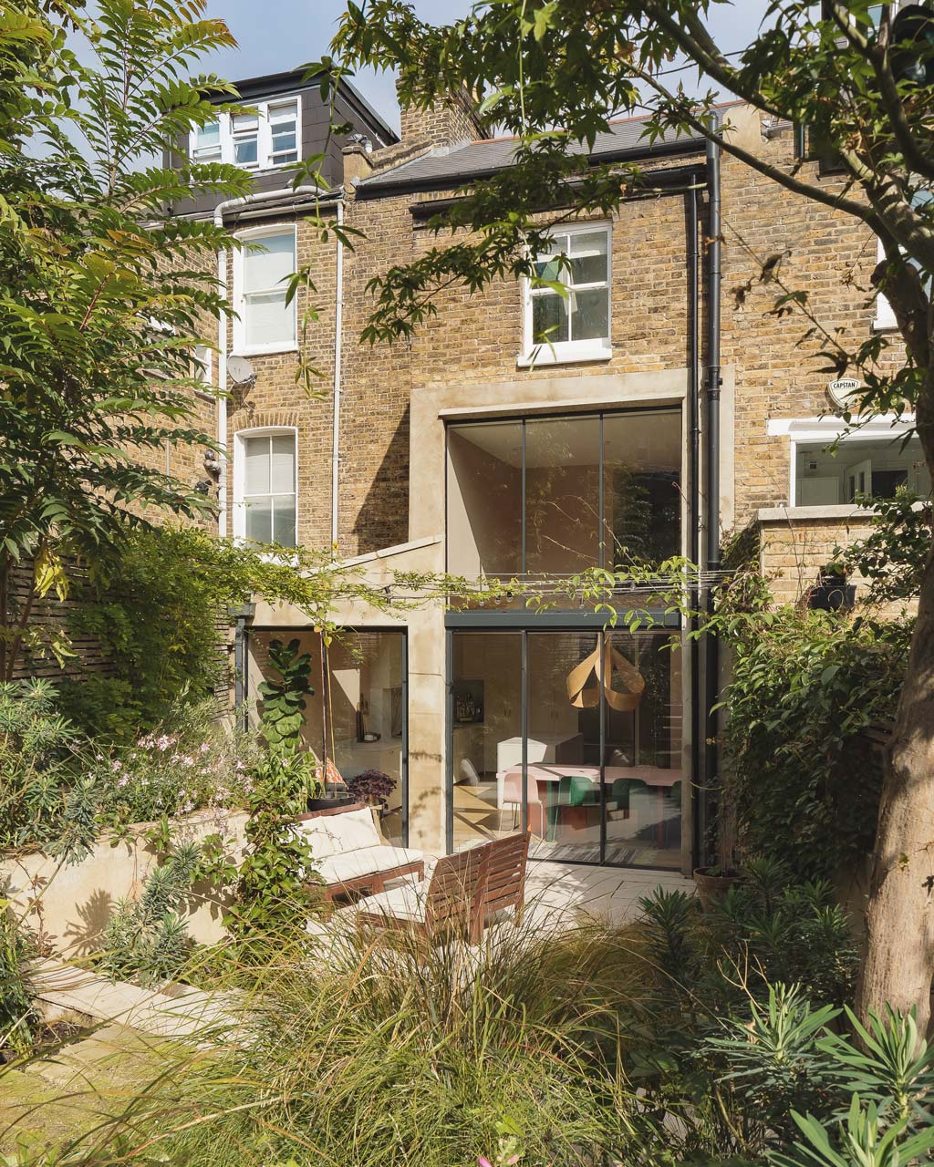 A side-return rear extension creates valuable extra space for the new living area, and a light-filled double-height space doubles as circulation for stairs.