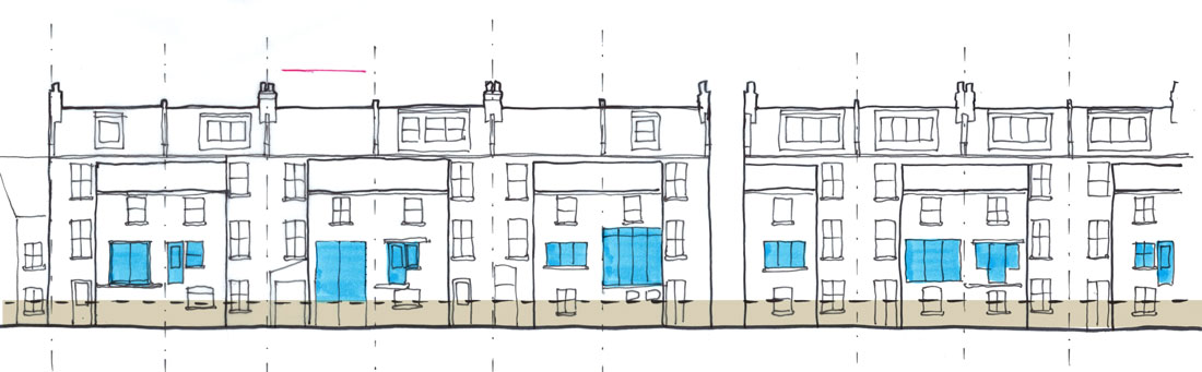 Extension and major reconfiguration of a Victorian terraced house. Our clients’ main aims were to relocate the kitchen and dining room to the lower ground floor, and to form a much stronger relationship to the south-facing garden.