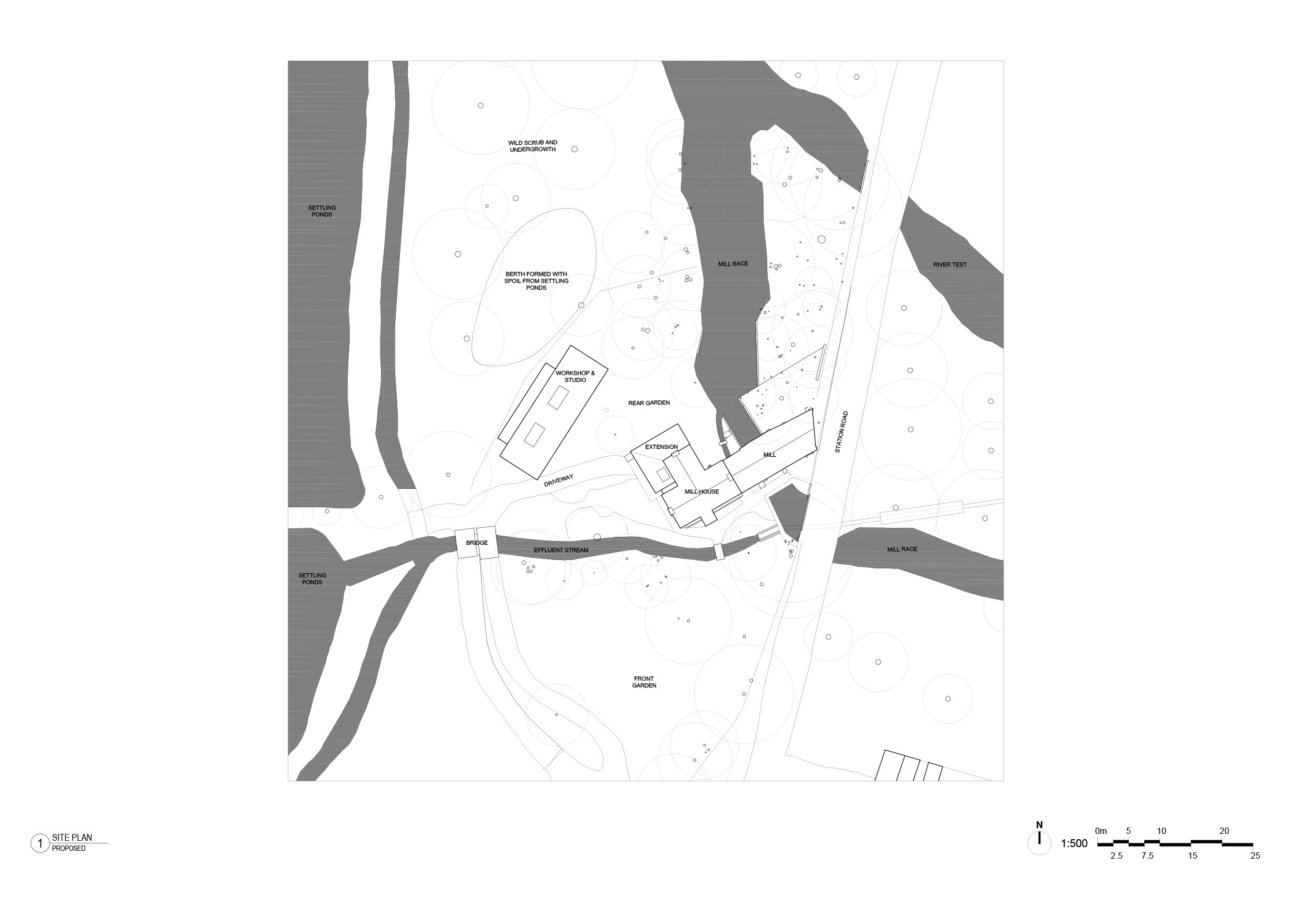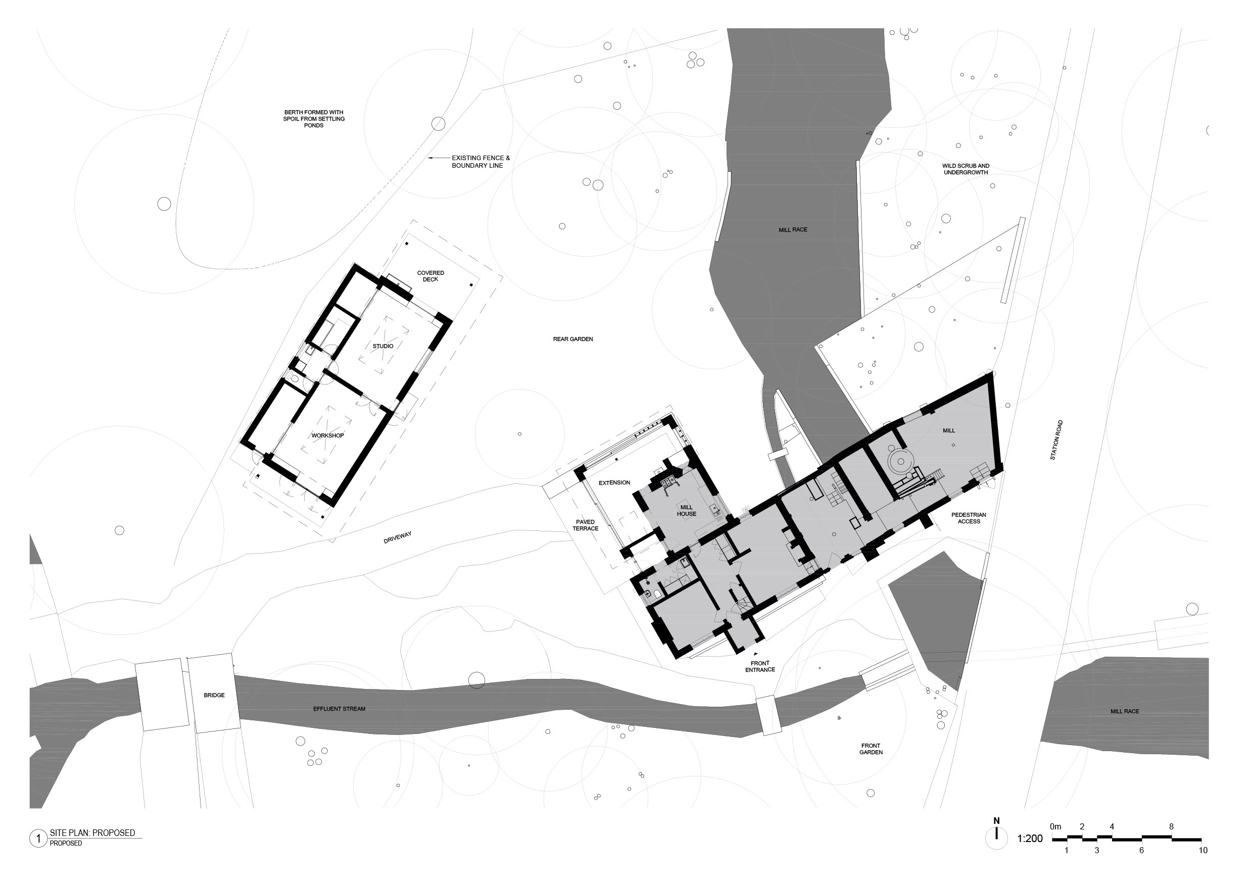 To accommodate the couple's work space requirements, we introduced a new studio building to the garden of the mill house.