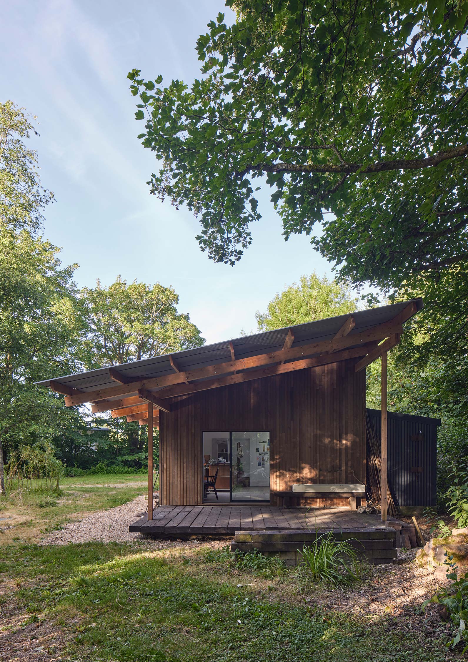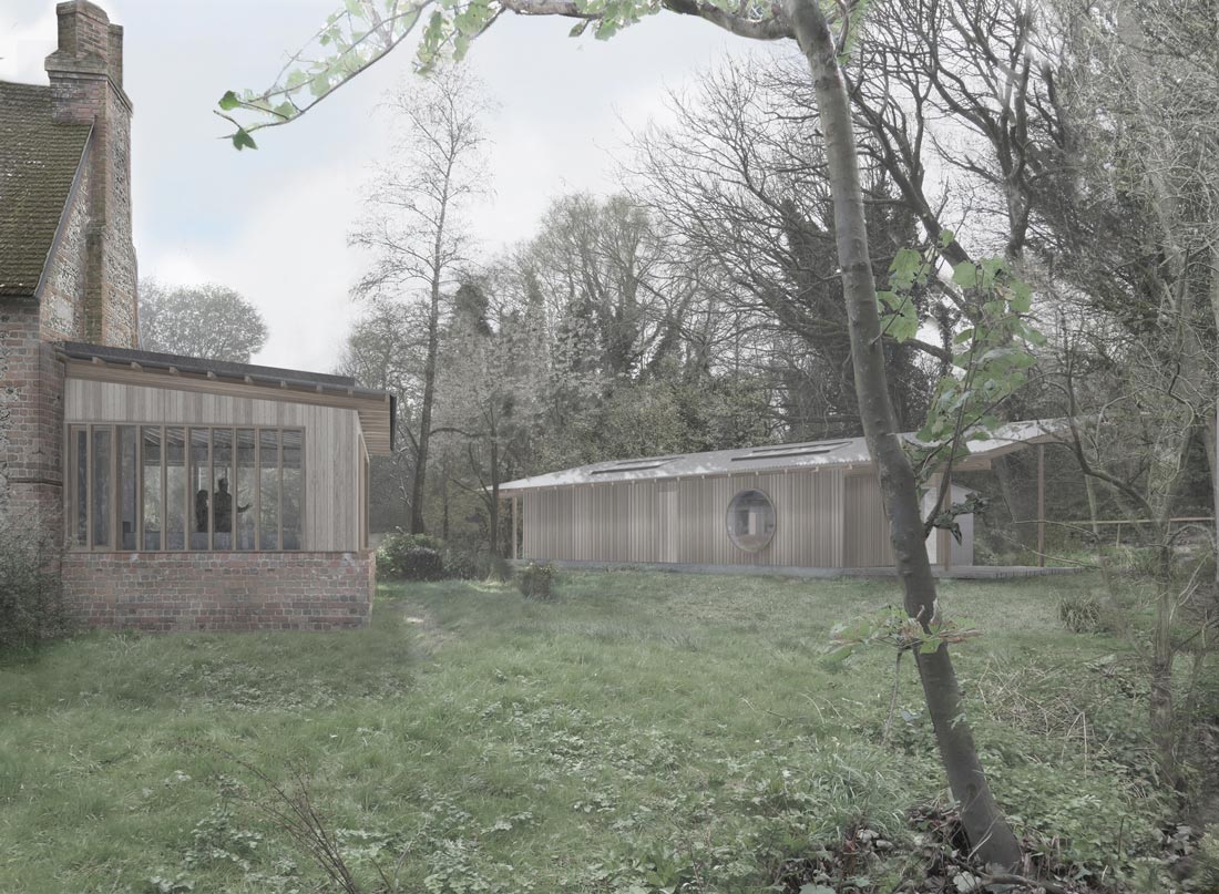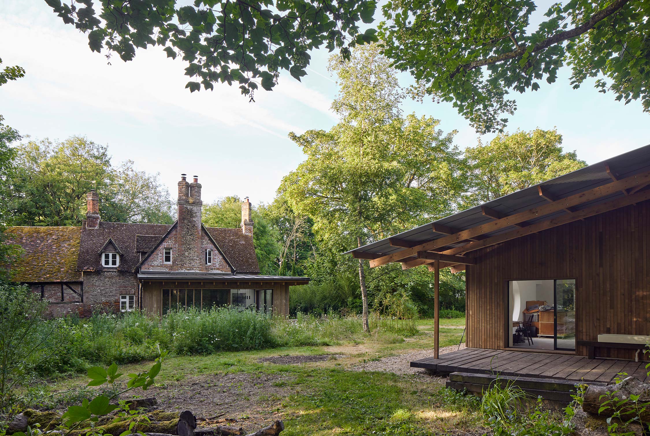 In addition to the new studio building, a modest extension to Quidhampton Mill House improves the living space onsite and re-orients the house to the garden, mill race and river beyond.