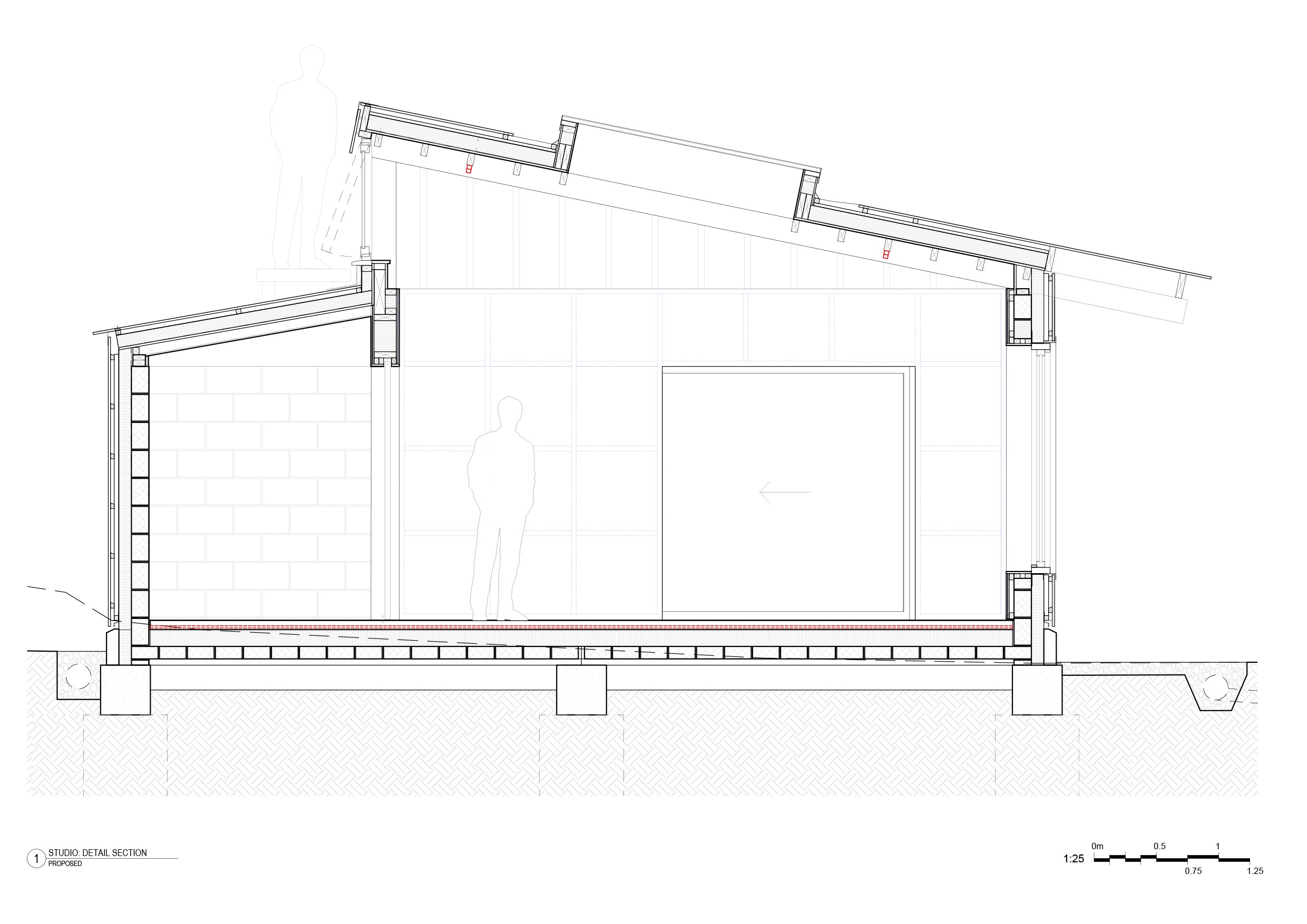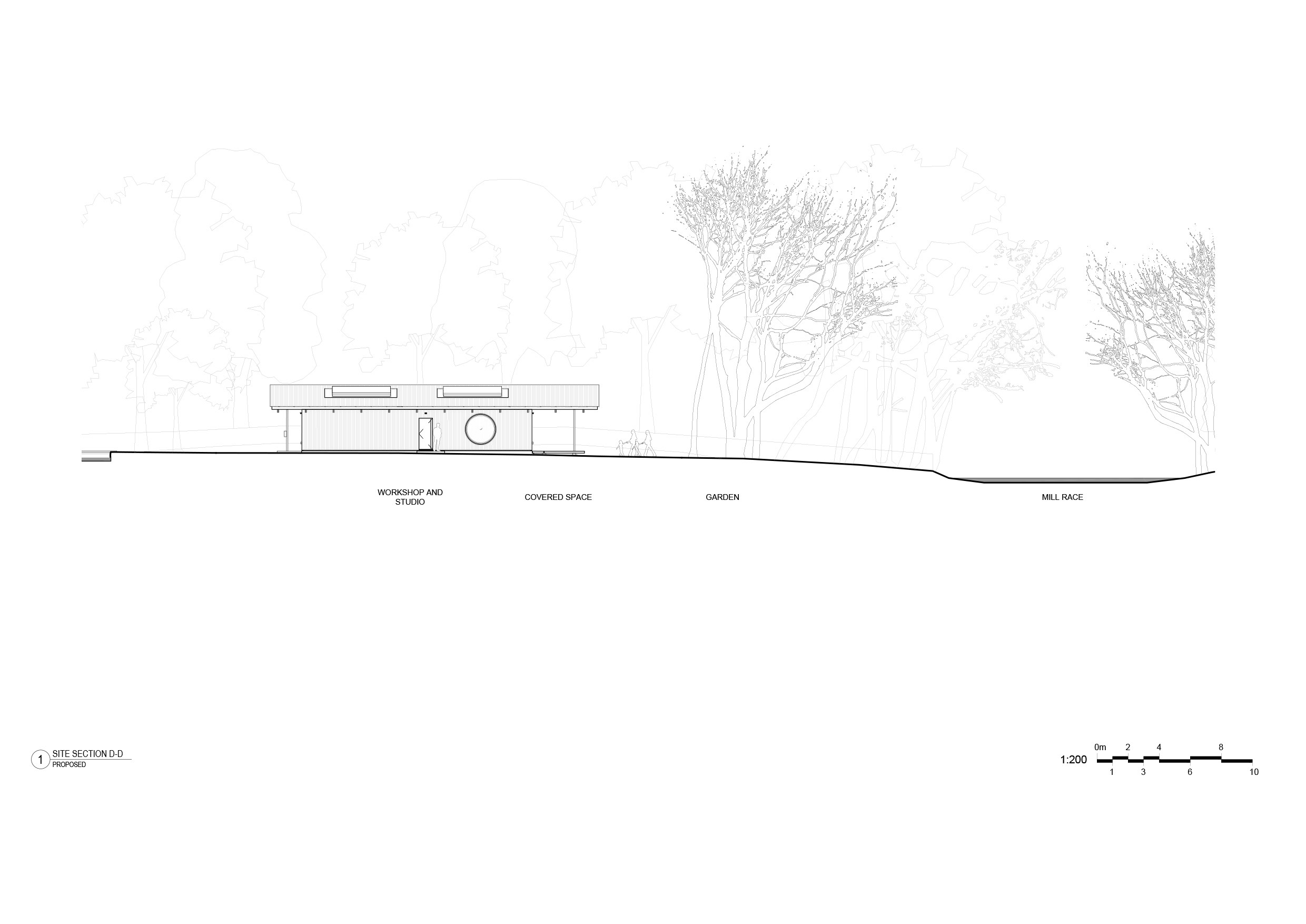 The clerestory windows, generous doors and covered outdoor areas create opportunities to work immersed in the landscape, whilst also providing key logistical features – delivery, storage, extract.