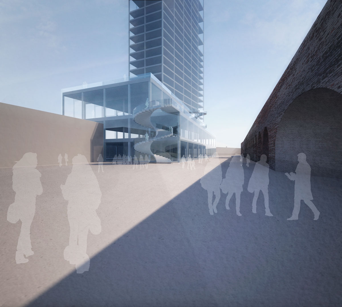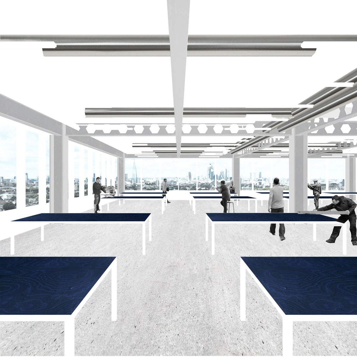 Artists studios at scale: a collaboration with Bold Tendencies. This proposal aims to challenge the status quo, with a custom-built tall building in which artistic and community functions sit above a light industrial plinth.