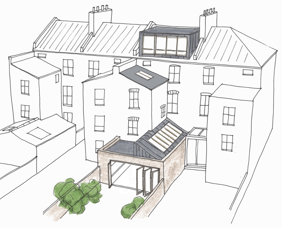During the planning process, Islington planners required a lower boundary height so we developed a different stepped approach to the rear elevation.