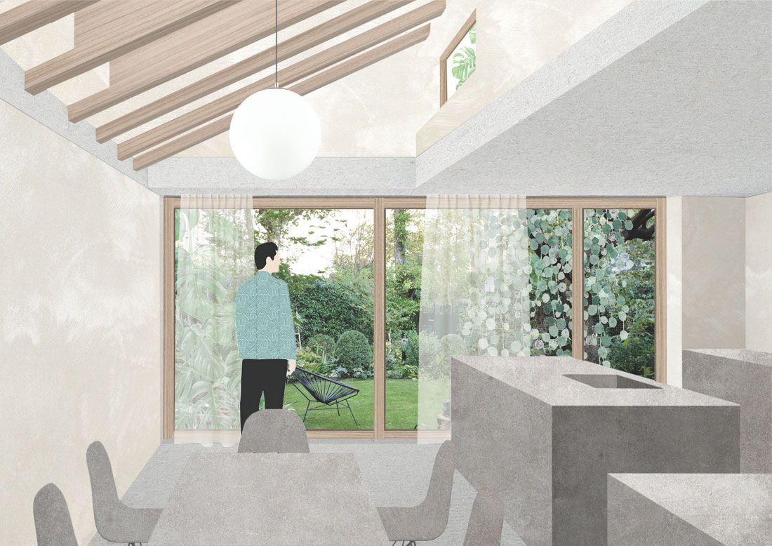 The clients’ priority was to form a strong connection to their lush, plant-filled rear garden, so we focussed on ways to form a generous opening that could continue through to the existing reception rooms.