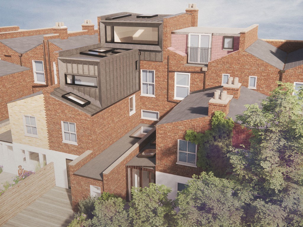 A Victorian terrace in north London, already extended at ground level by a previous owner, and now extending upwards — a mansard roof addition providing a new master bedroom, shower room and study, with long unimpeded views to the rear that are rare for a house of this type.