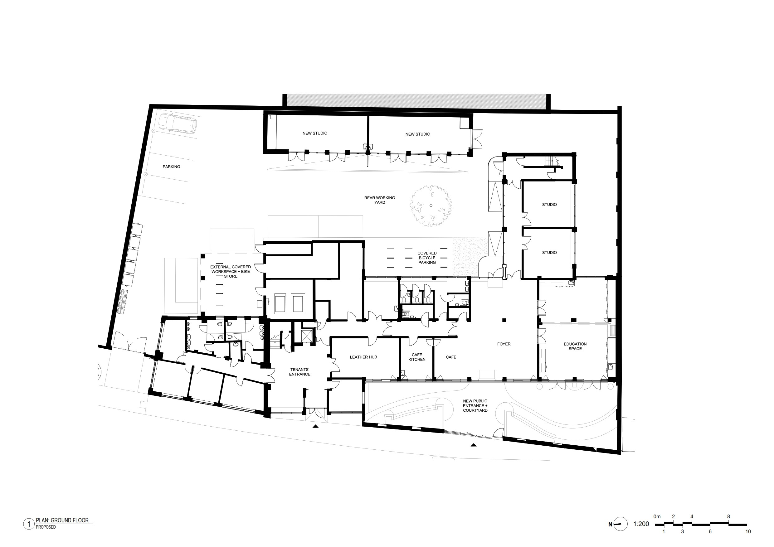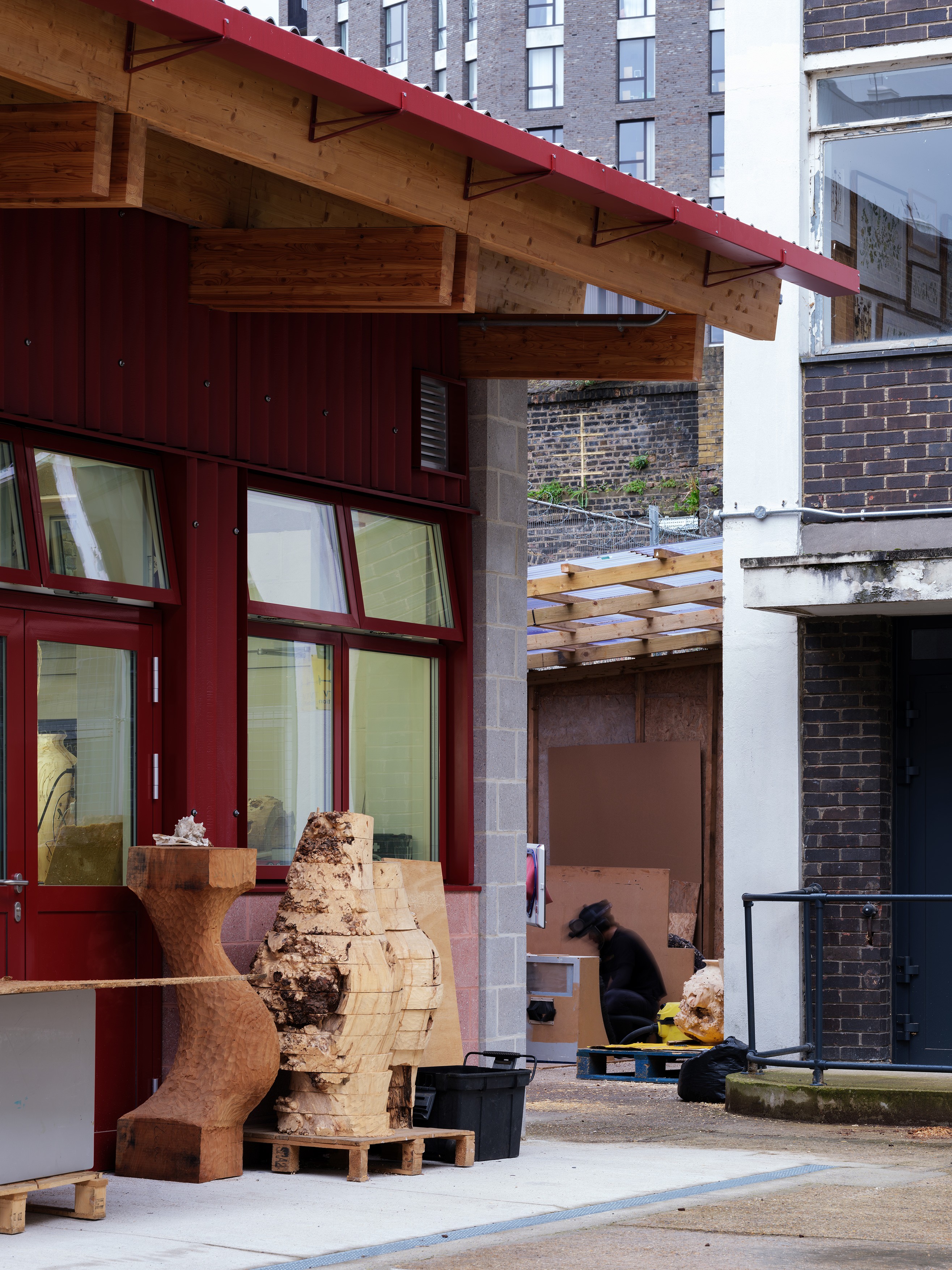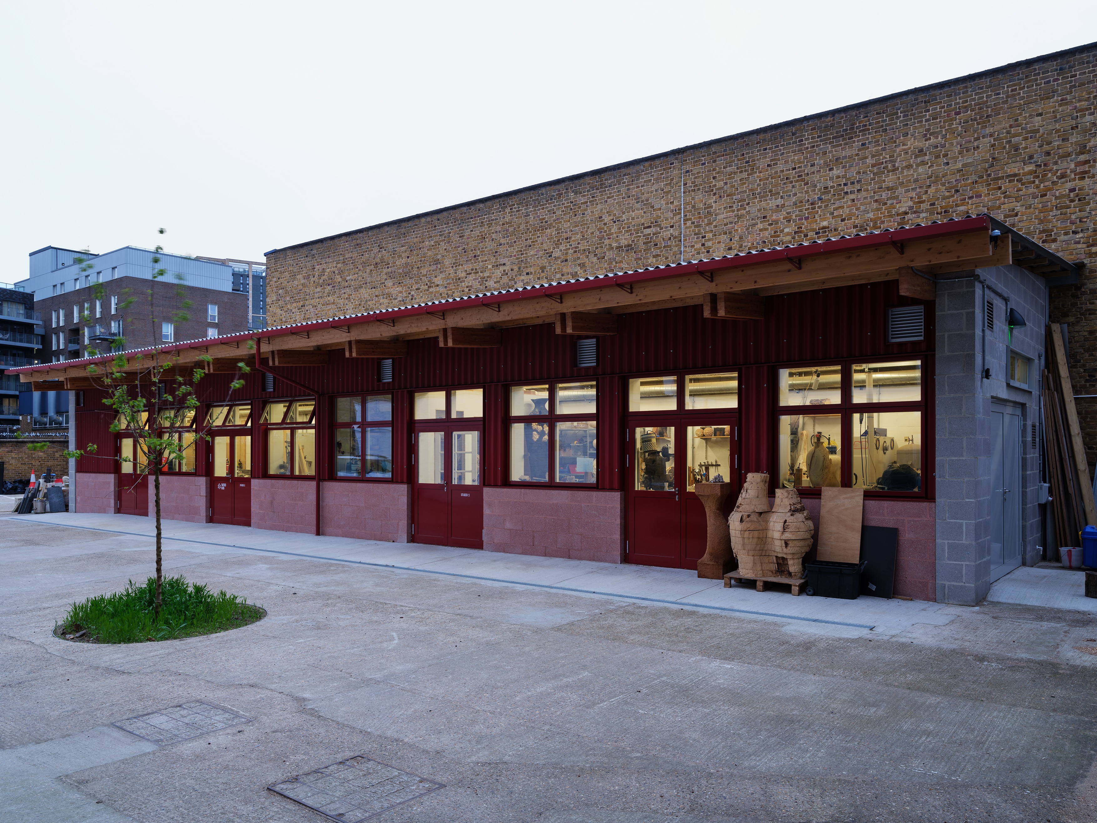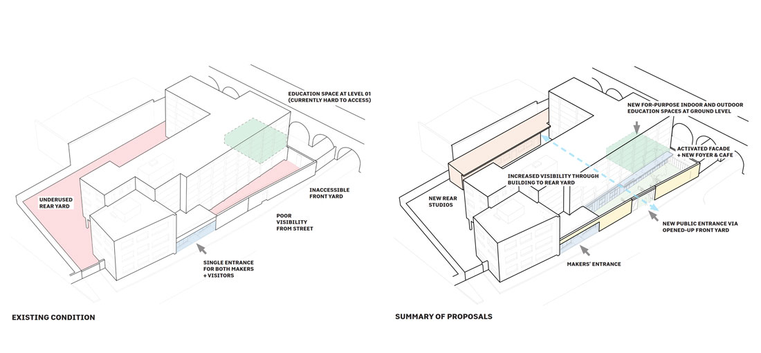 The existing building was built in the 1960's as a council office building, on the site of a former wharf warehouse. Internal studio spaces with a yard for outdoor working have proven ideal for makers — yet the richness of the activities behind its doors has been largely obscured to the public until now.
