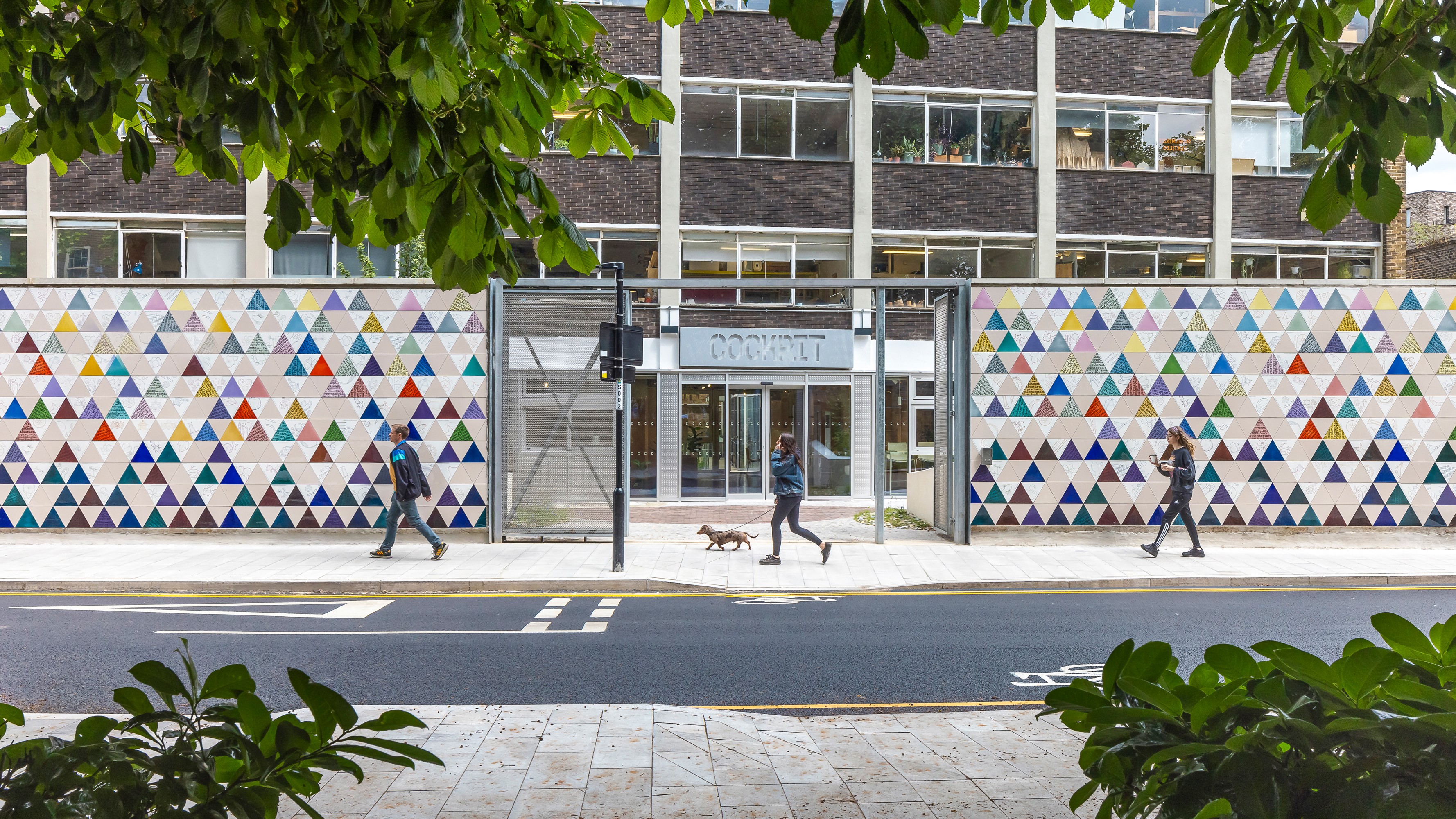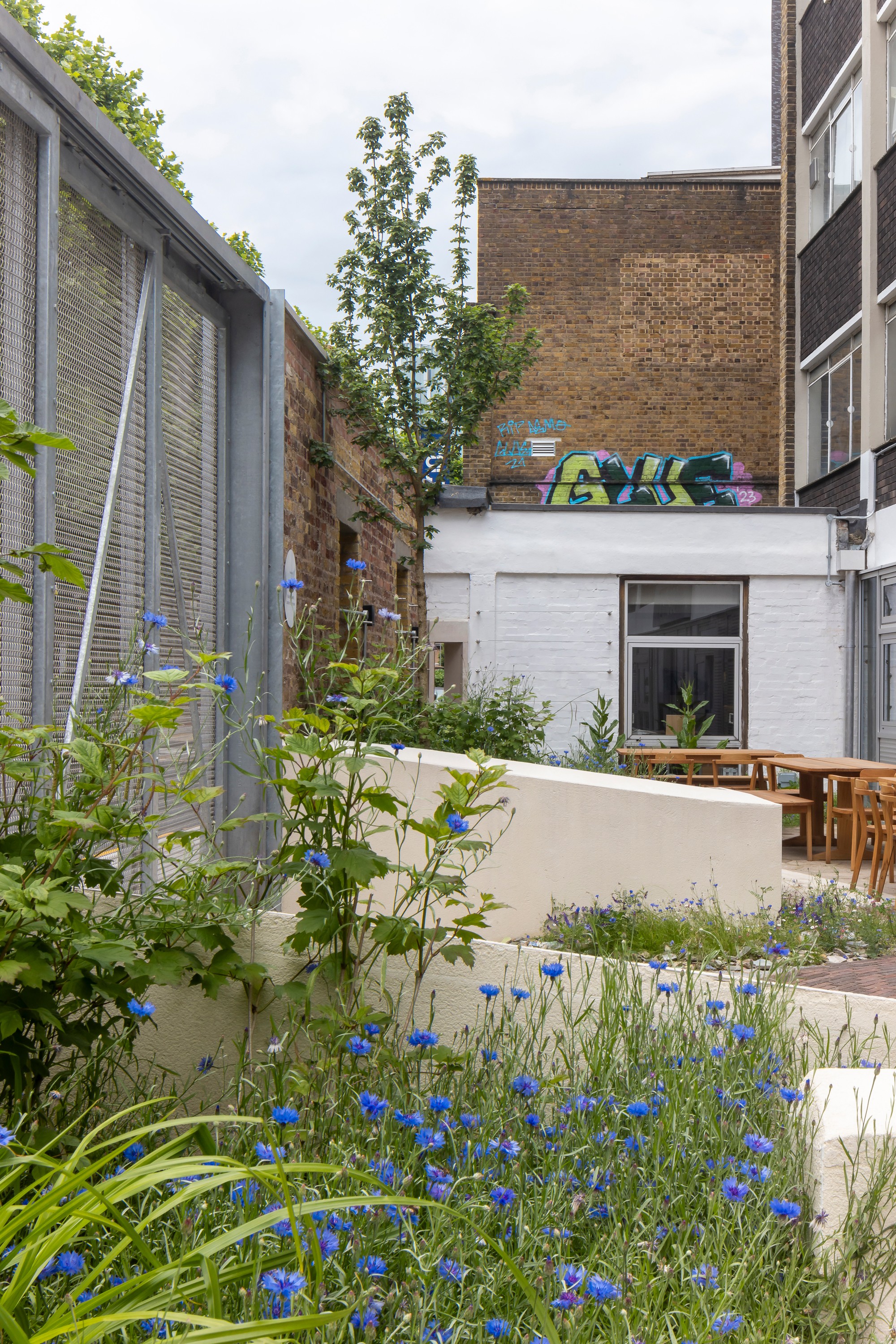 The new ‘Cockpit Craft Garden’ designed by Sebastian Cox and Immy McAndrew creates a garden oasis in a previously neglected and inaccessible yard. The front wall of the building is reimagined as a new public art work ‘Head, Heart, Hands’ by Cockpit maker Amber Khokhar.