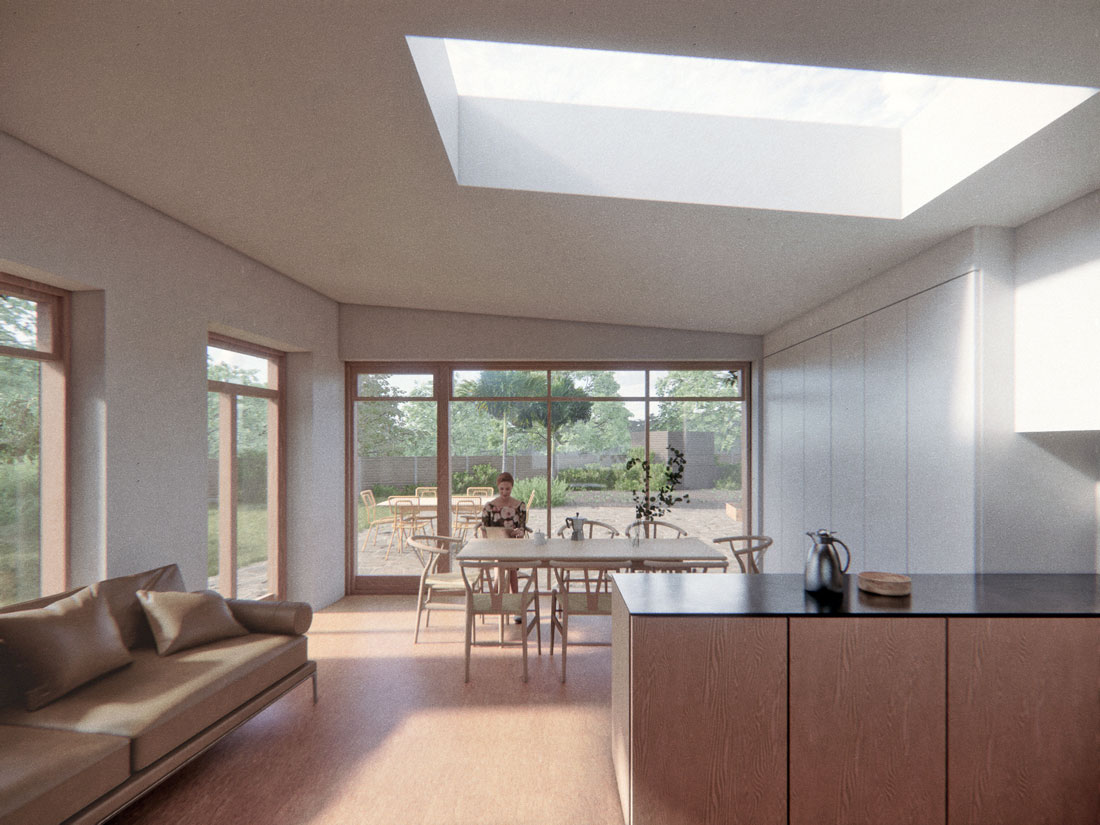 Direct commission for a new extension to provide a generous new family living and kitchen space for an end-of-terrace cottage in Wimbledon. The proposal aims to connect the house to the large triangular garden, which until now has been difficult to access from the house.