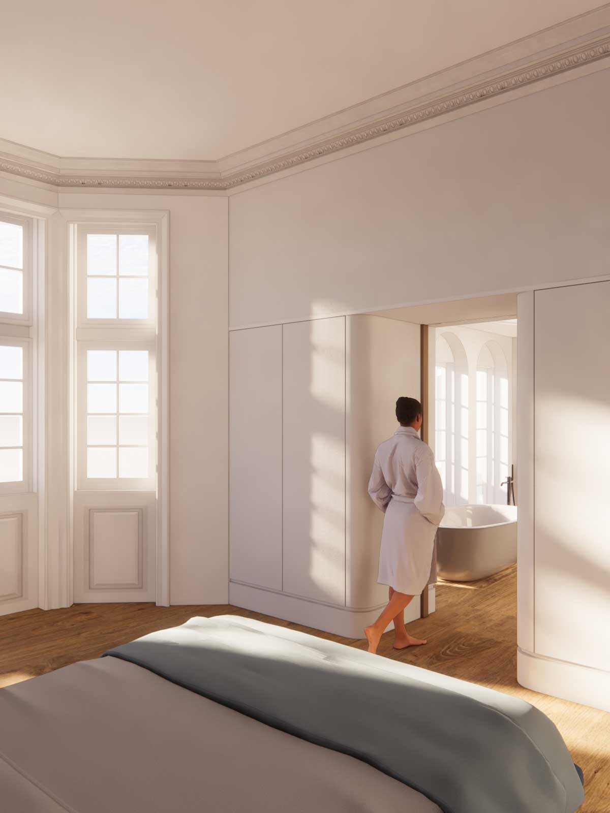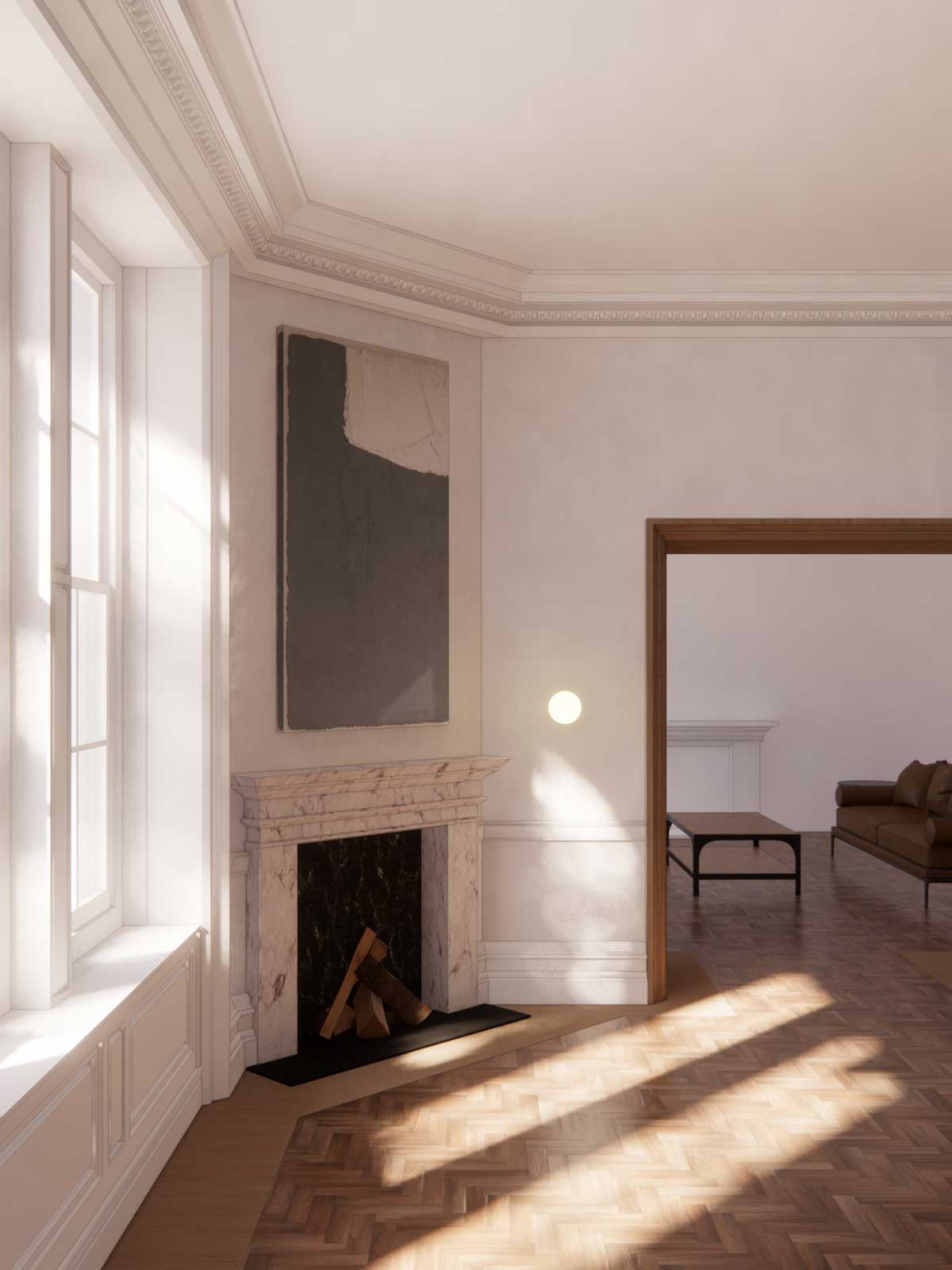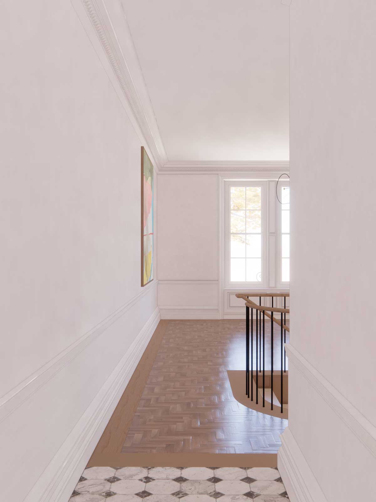 Generational upgrade of a pair of Grade II Listed Mayfair townhouses. The project will transform the communal access, services, and energy efficiency of the apartment block and reinstate the interior and exterior building fabric to a finish of the highest architectural quality.
