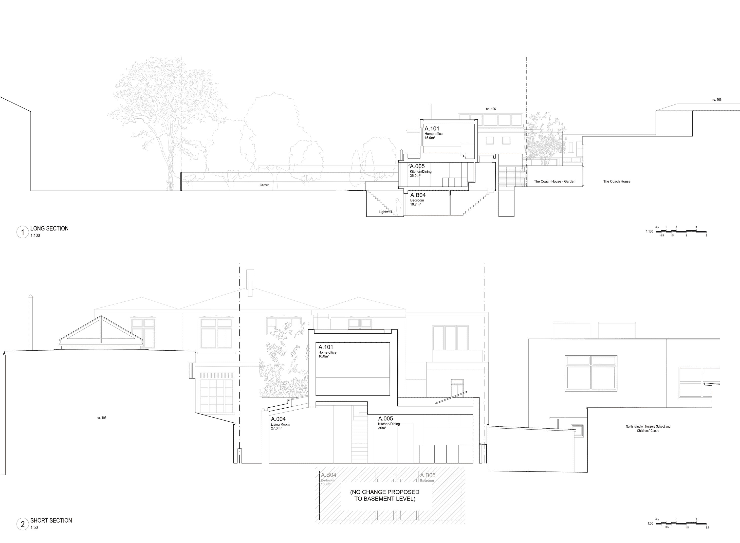 A modern family house in Finsbury Park had an unusual imbalance at its core: four bedrooms buried below ground, served by a modest ground-floor living area that hadn't kept pace with how the family now lives and works. We were asked to correct that, adding space for both everyday life and home working, while making a coherent architectural composition of old and new.