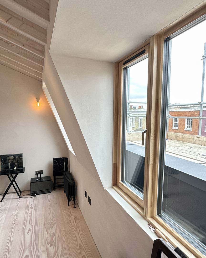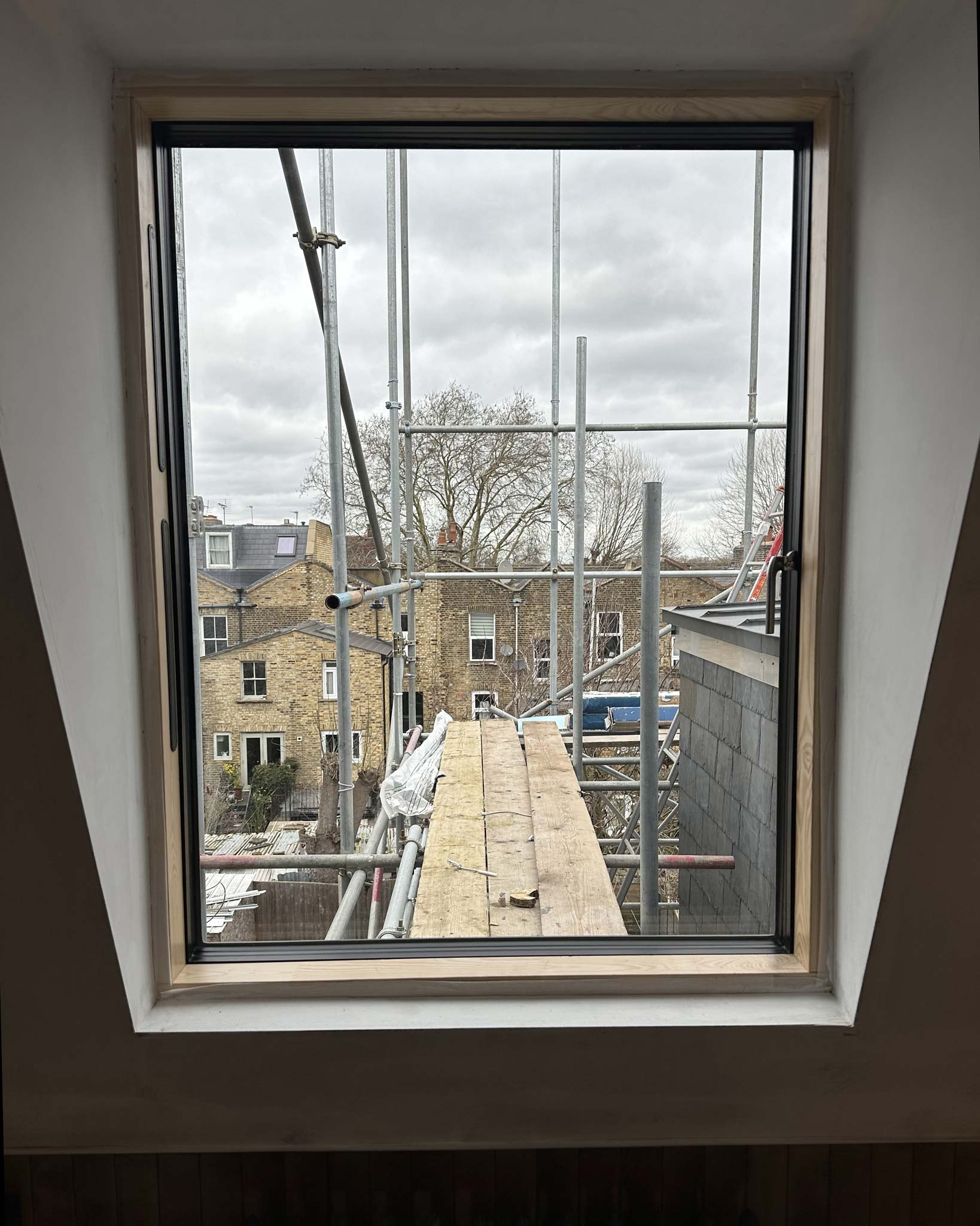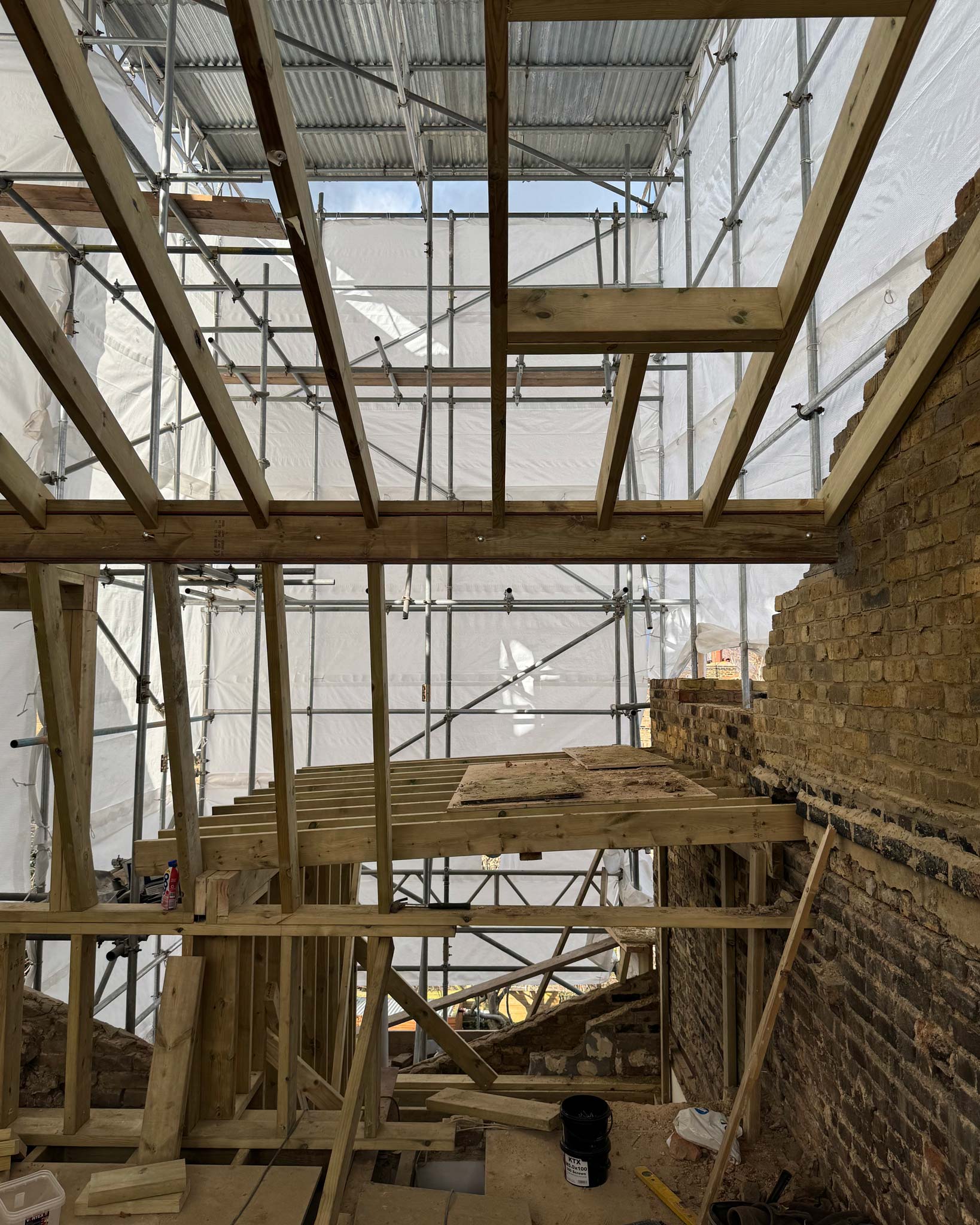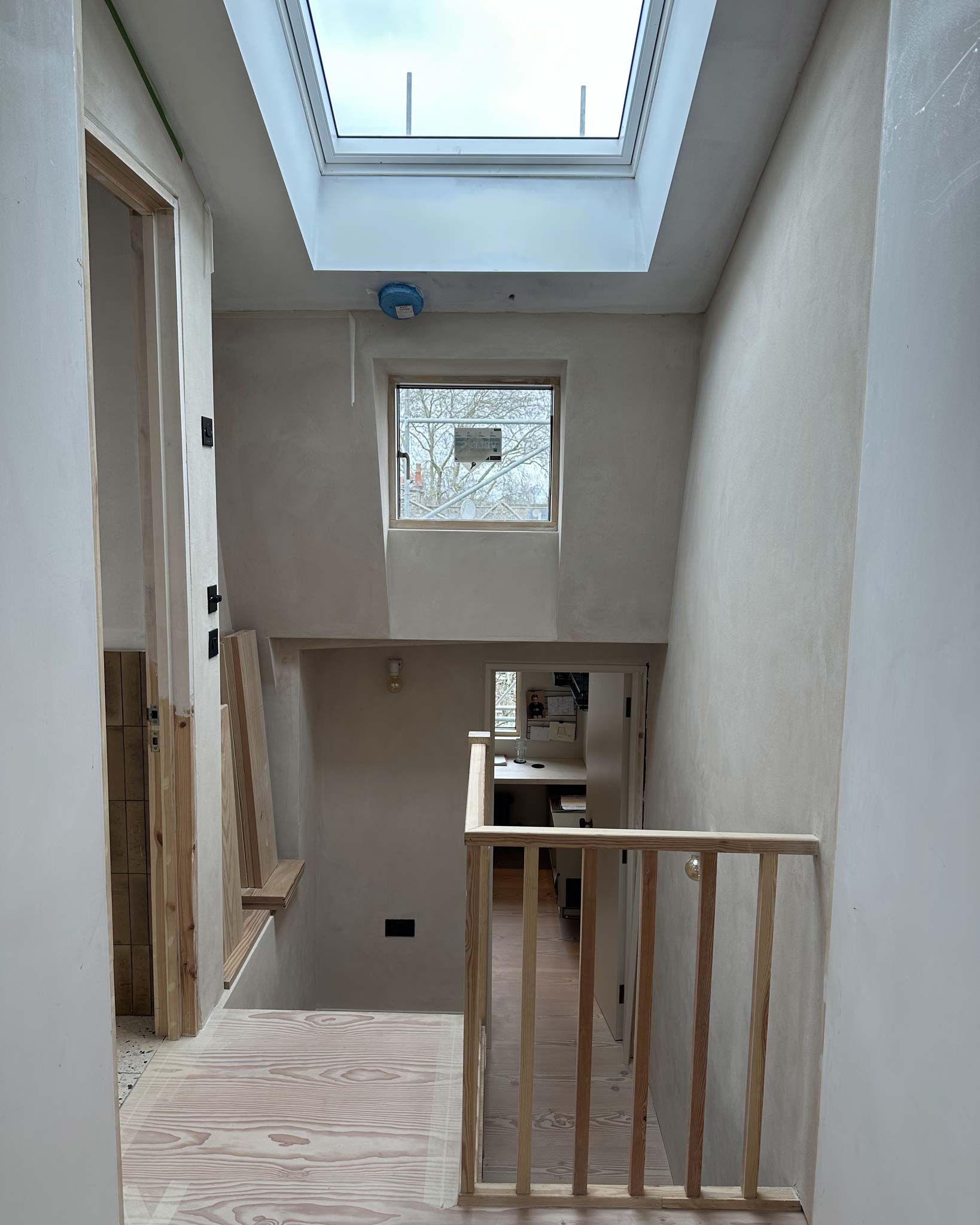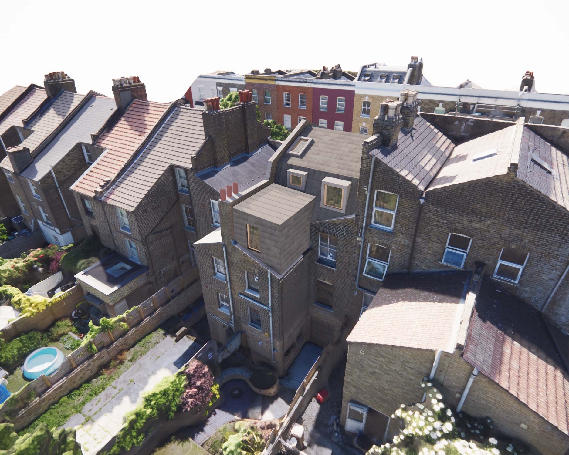 A tall mansard roof extension and rear outrigger extension in Hackney.