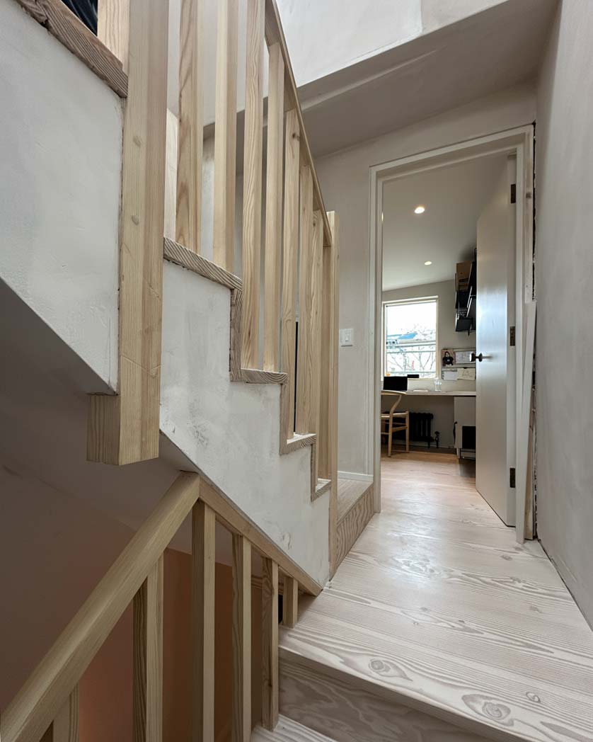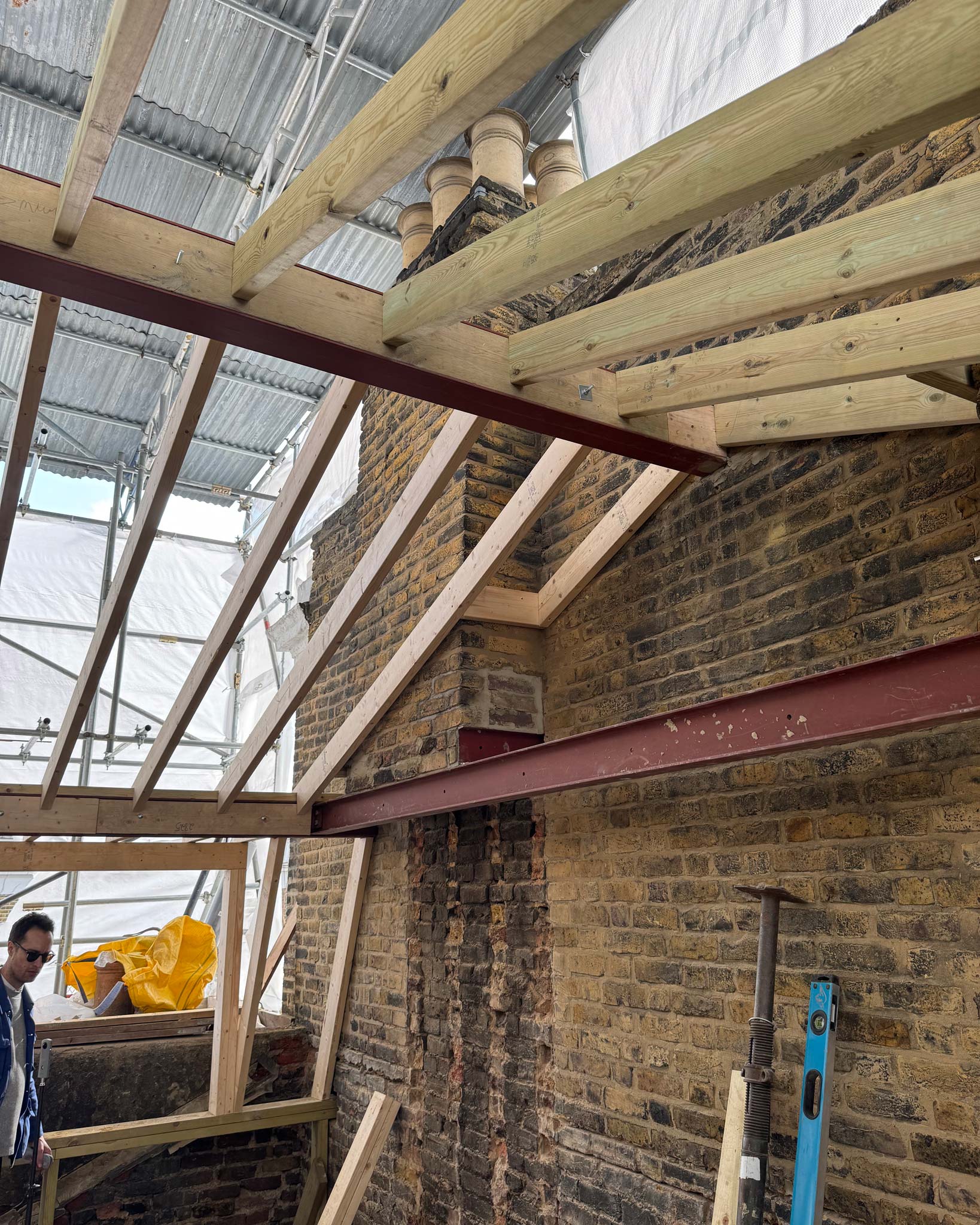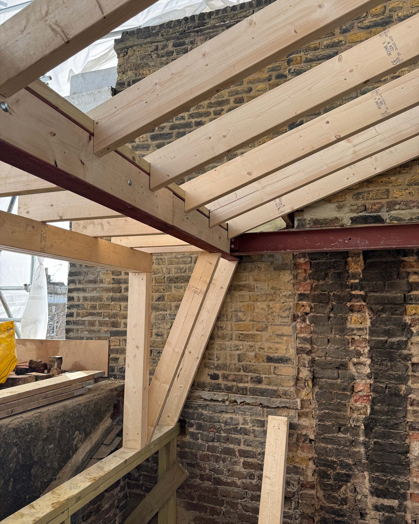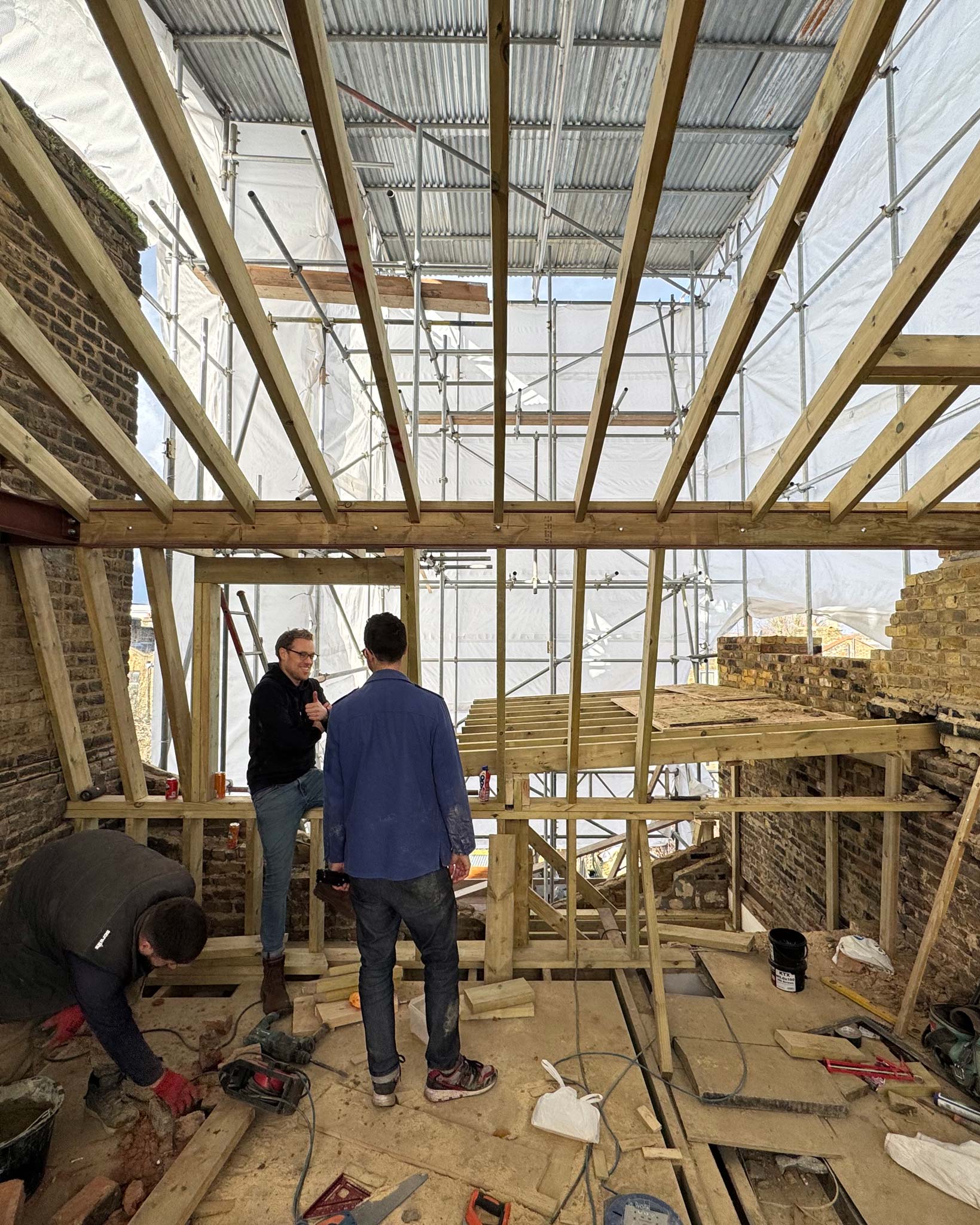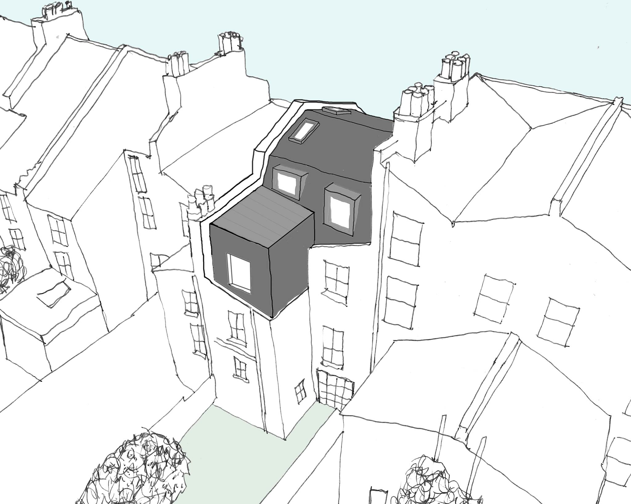 A tall mansard roof extension and rear outrigger extension in Hackney.