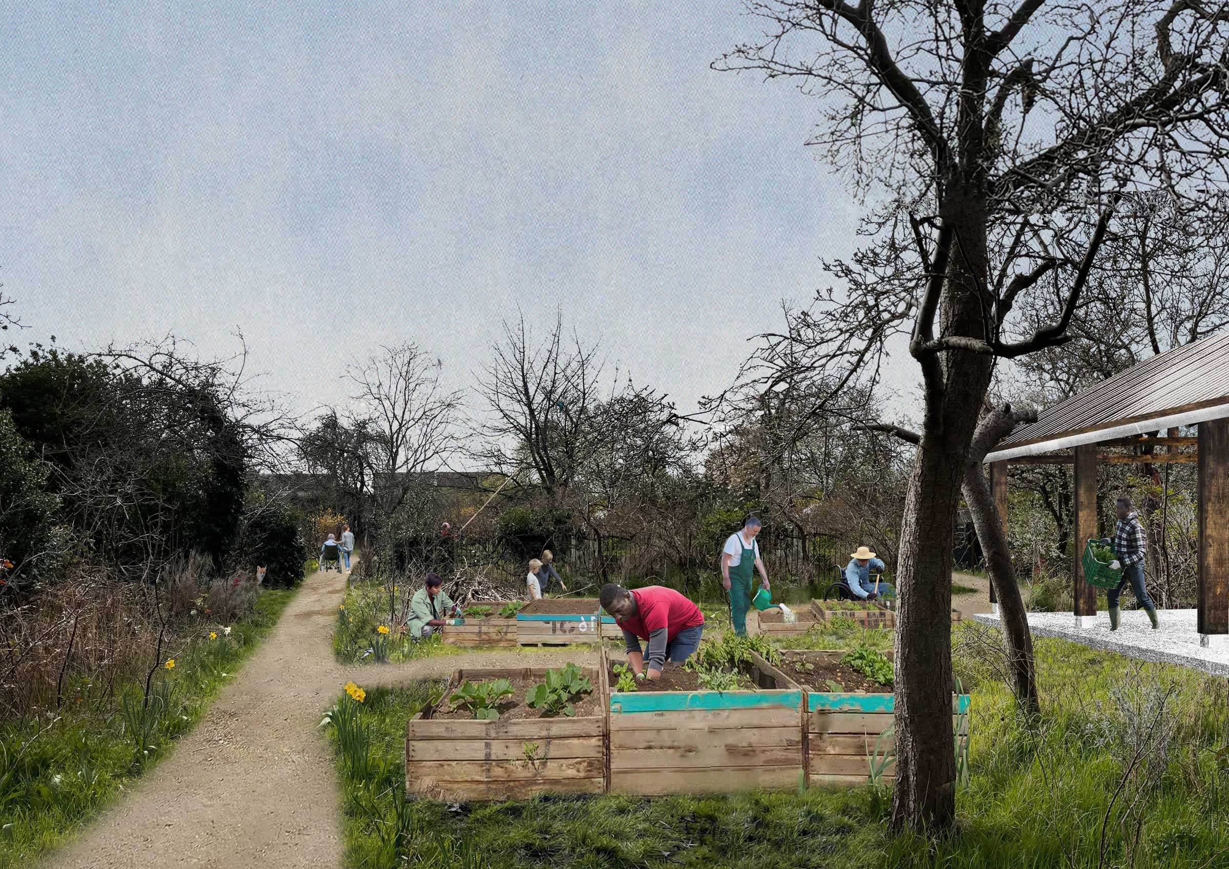 Its heritage as a domestic, productive garden hints at a new potential for city-living within the area, and foregrounds questions around food growing, biodiversity, climate resilience and the need for green spaces to support wellbeing, reflection, and repair.