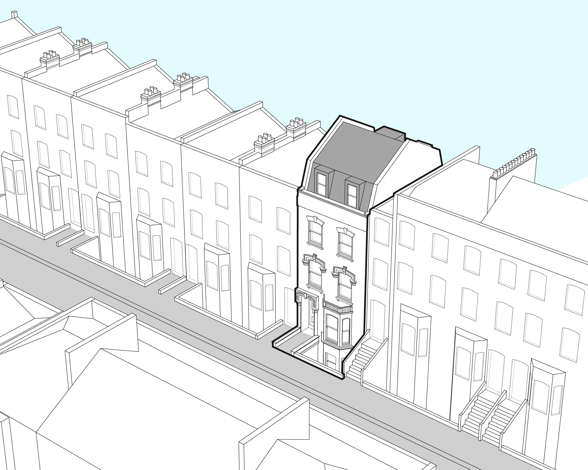 Section studies looking at roof form, terrace levels and extending the stair upwards