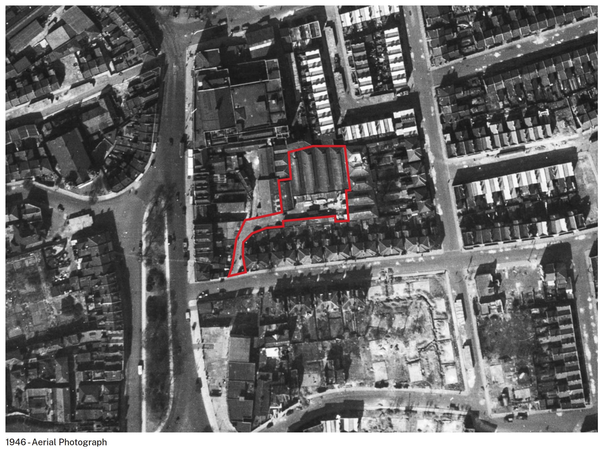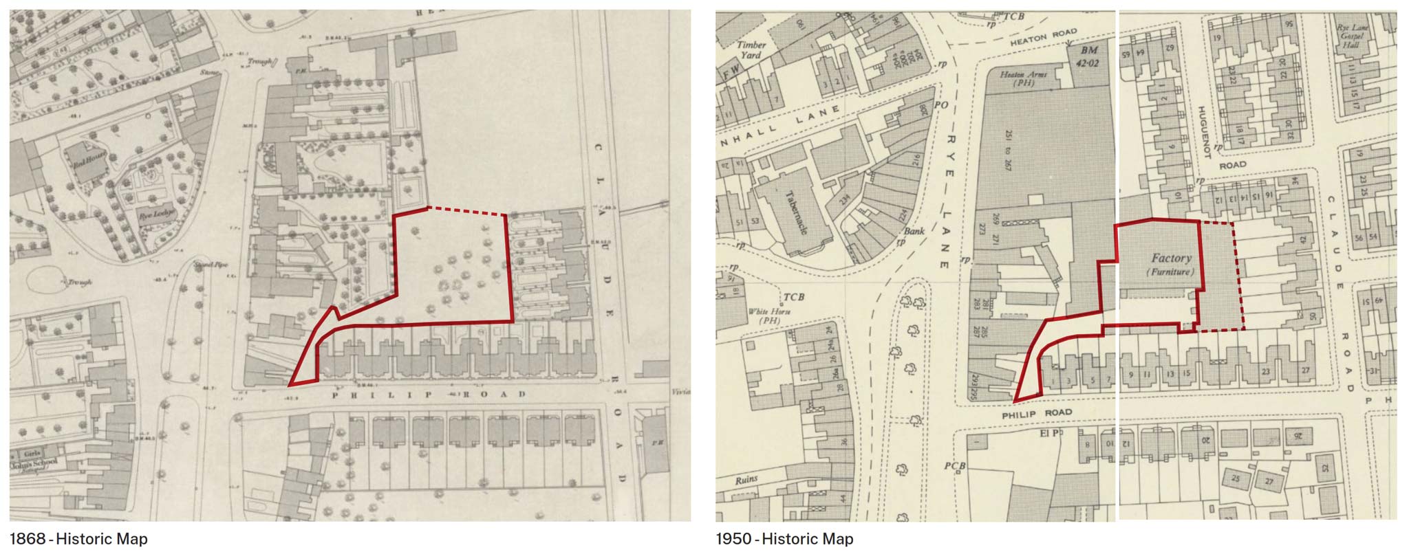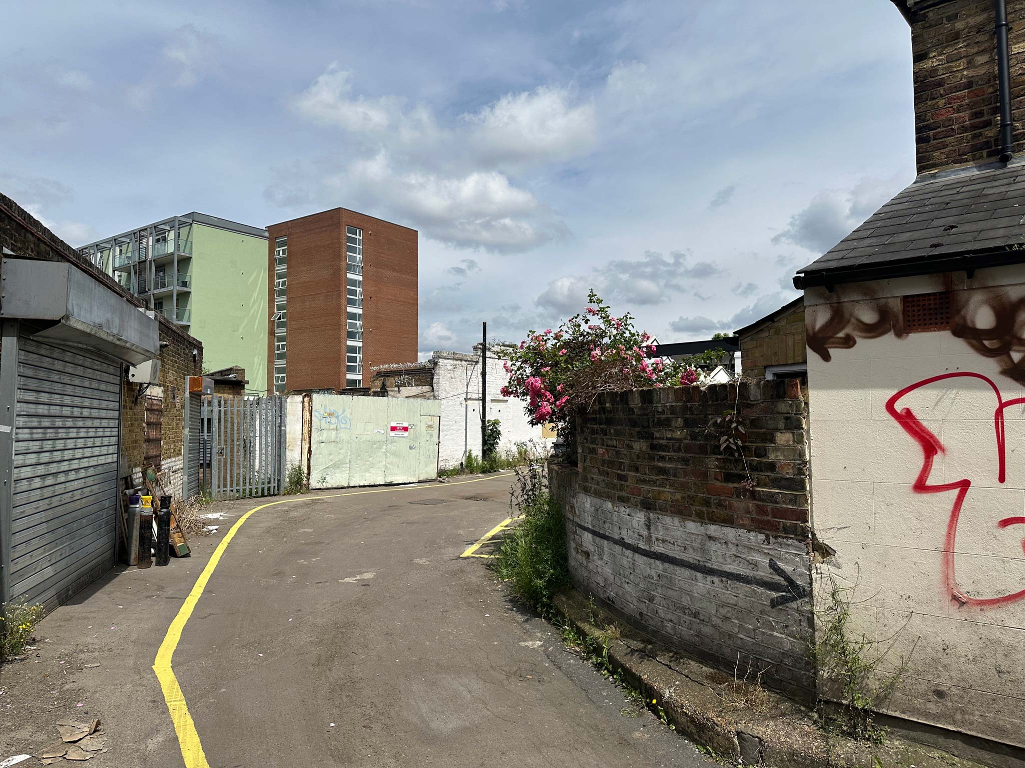 Existing site conditions and historic research — former furniture making and printing workshops, located on a private yard behind a terrace of Victorian houses of Philip Road
