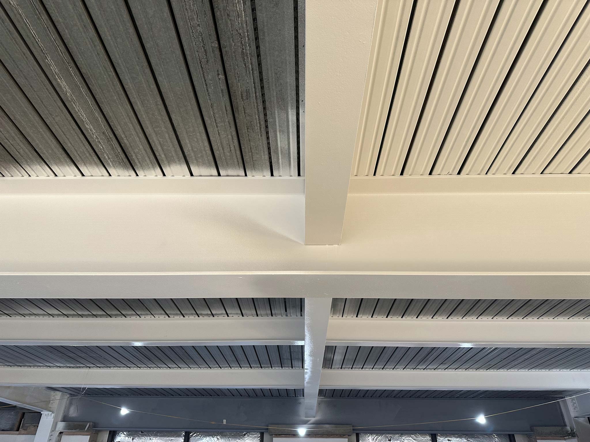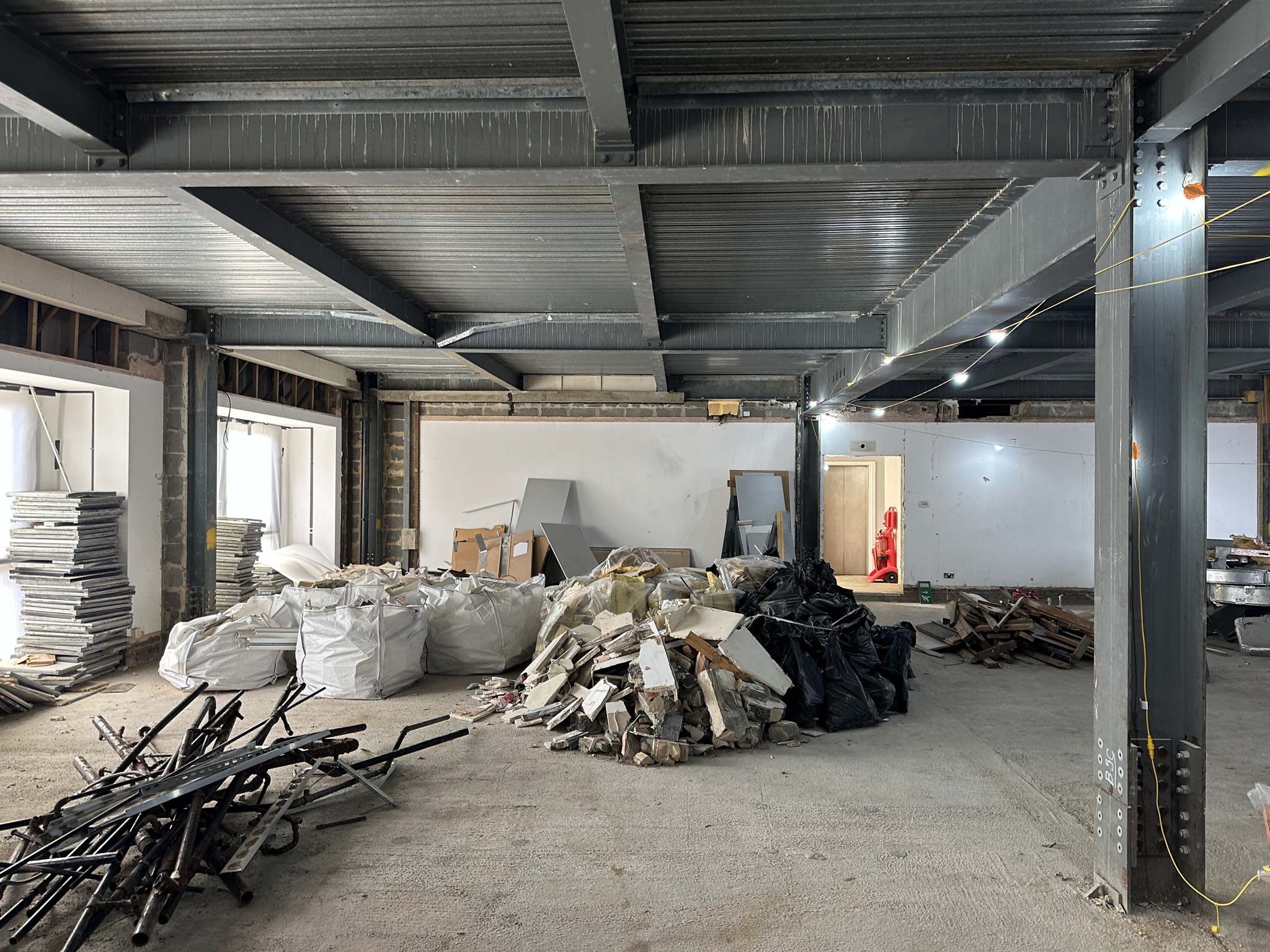 Stripping out the suspended ceiling has revealed the original steel frame, which will be protected with intumescent paint