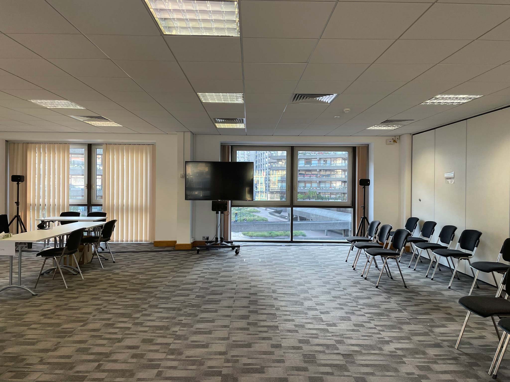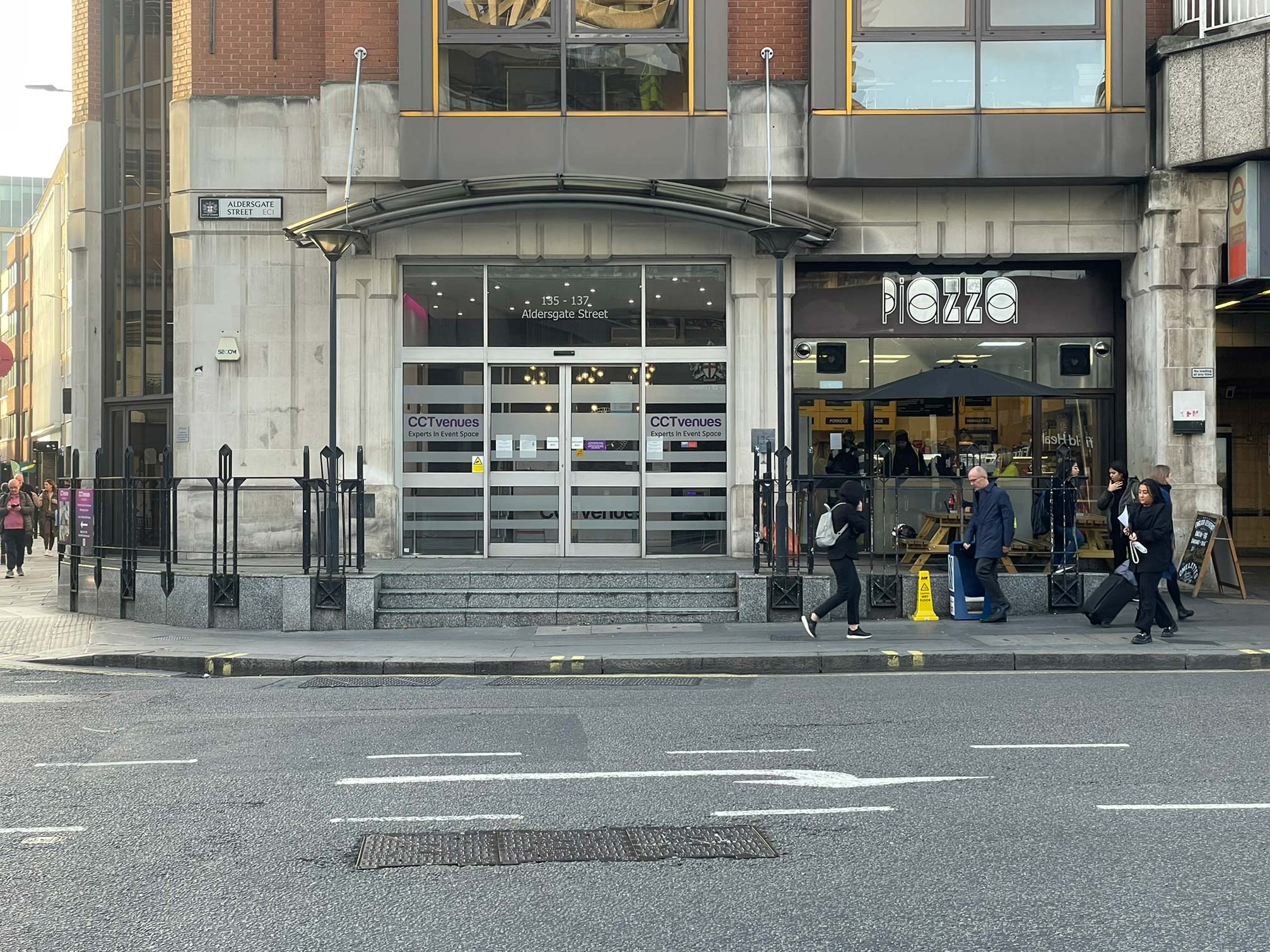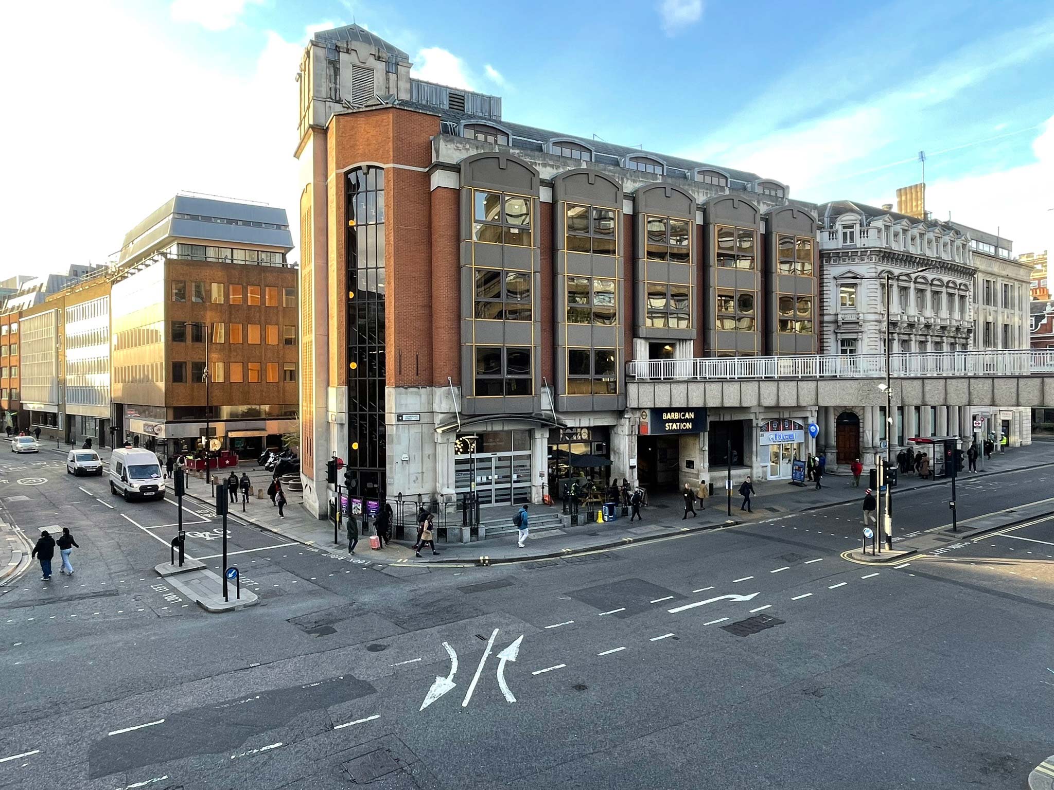 Removing suspended ceilings exposes the existing structural steelwork and increases the height of the spaces by 20%, turning what were low, compartmentalised floors into open volumes filled with natural light. The entrance sequence is completely reimagined: doubling the width of the foyer by incorporating an adjacent retail bay and removing the cluttered external canopy creates a transparent, welcoming arrival that engages directly with the street and Barbican high-walks.
