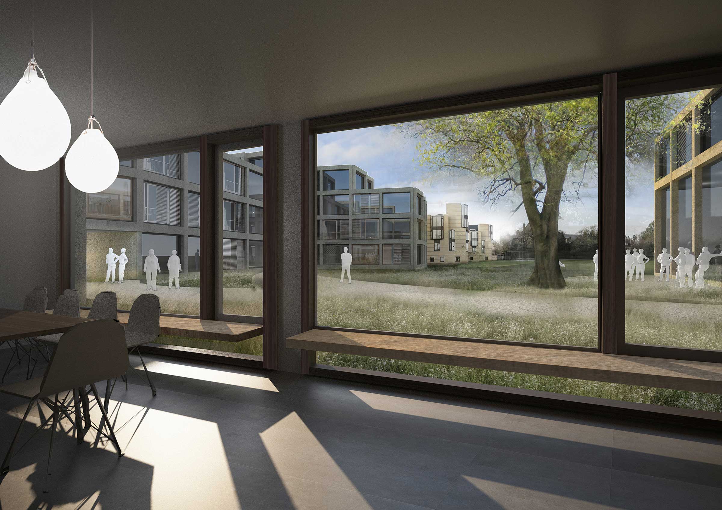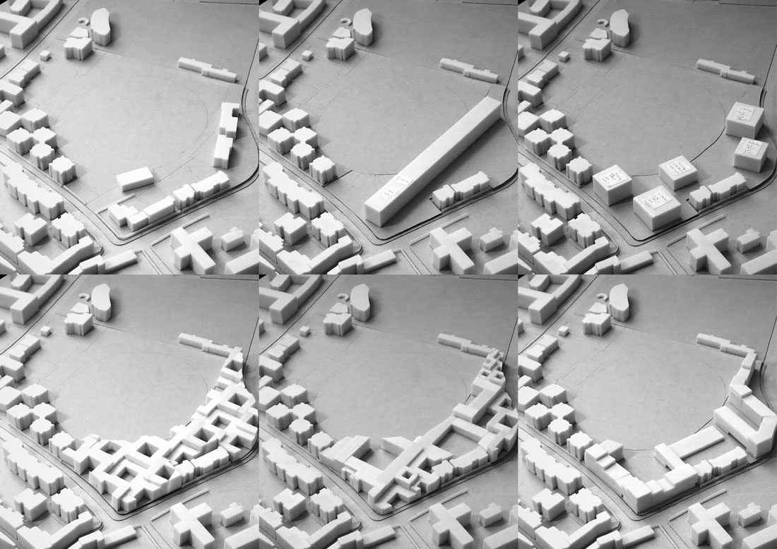Invited competition entry for 260 new undergraduate and graduate rooms, located on a site around an existing cricket field at the edge of the medieval centre of Oxford. We proposed a sequence of three new quads whose sizes are carefully calibrated, based on detailed research of the scale of existing quads in Oxford colleges.
