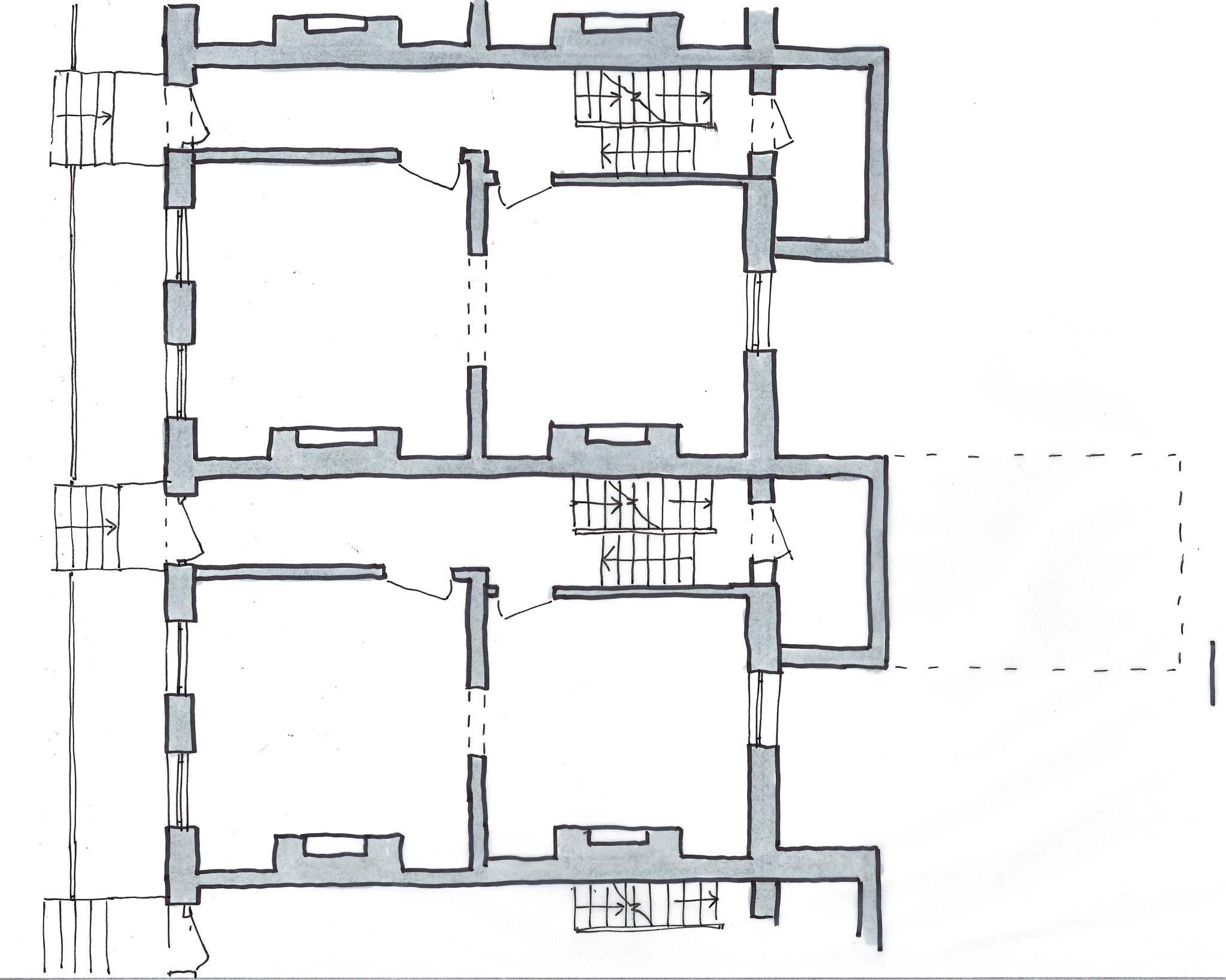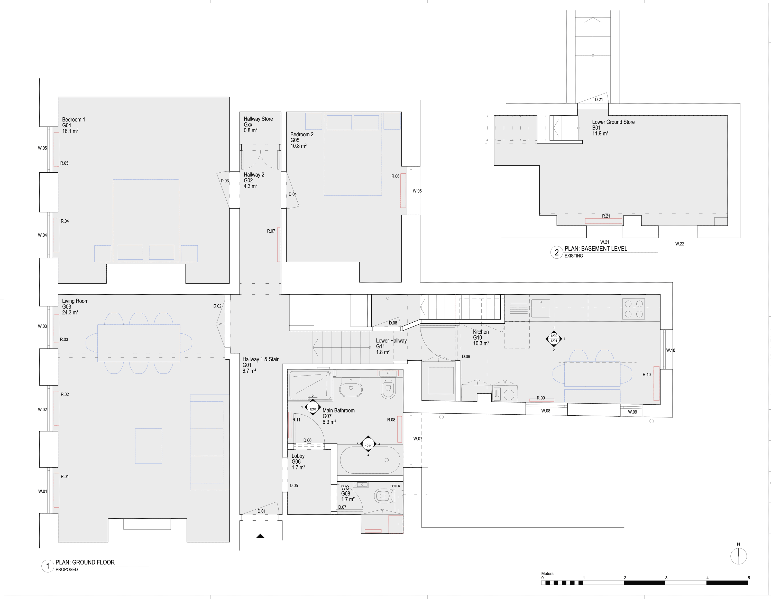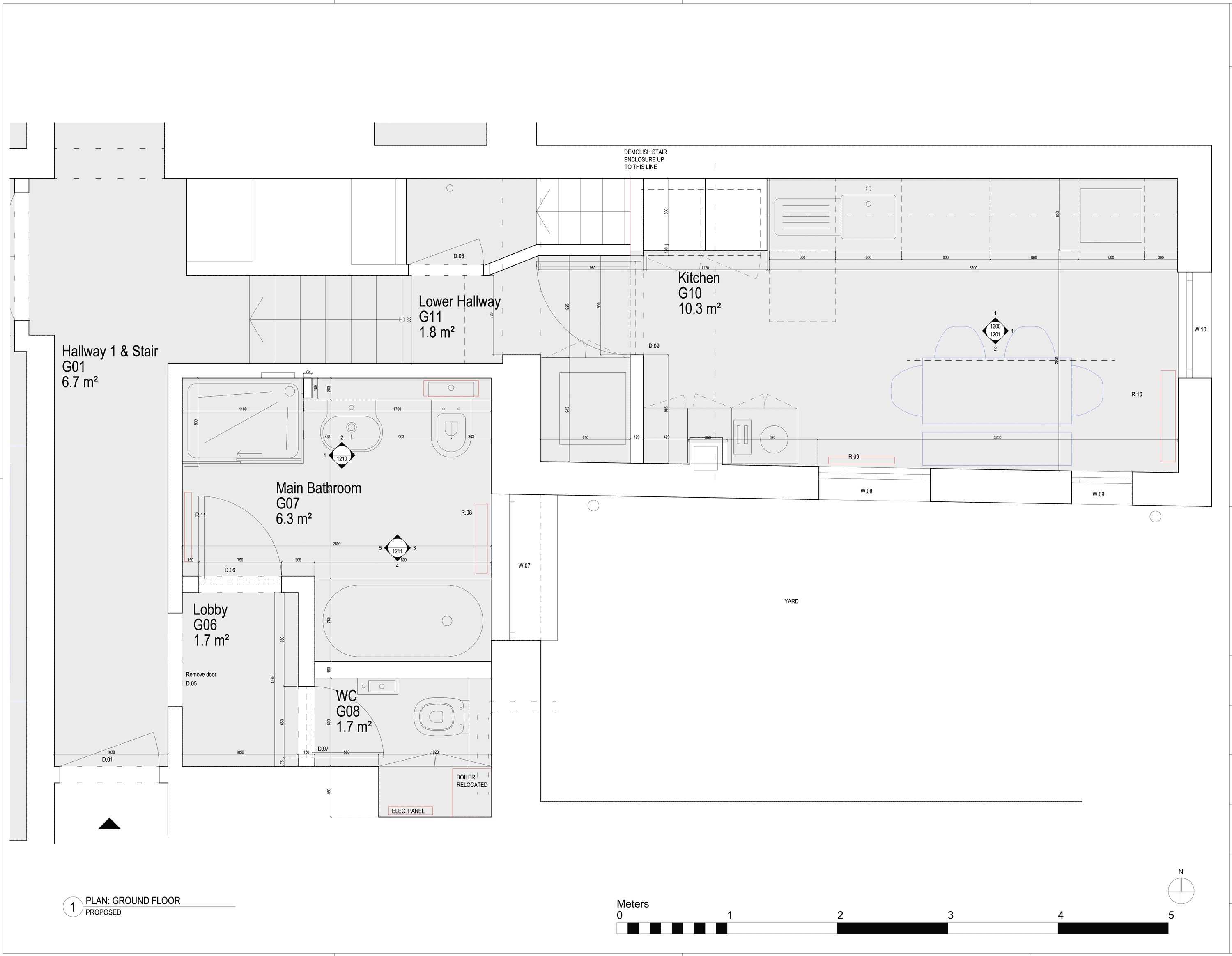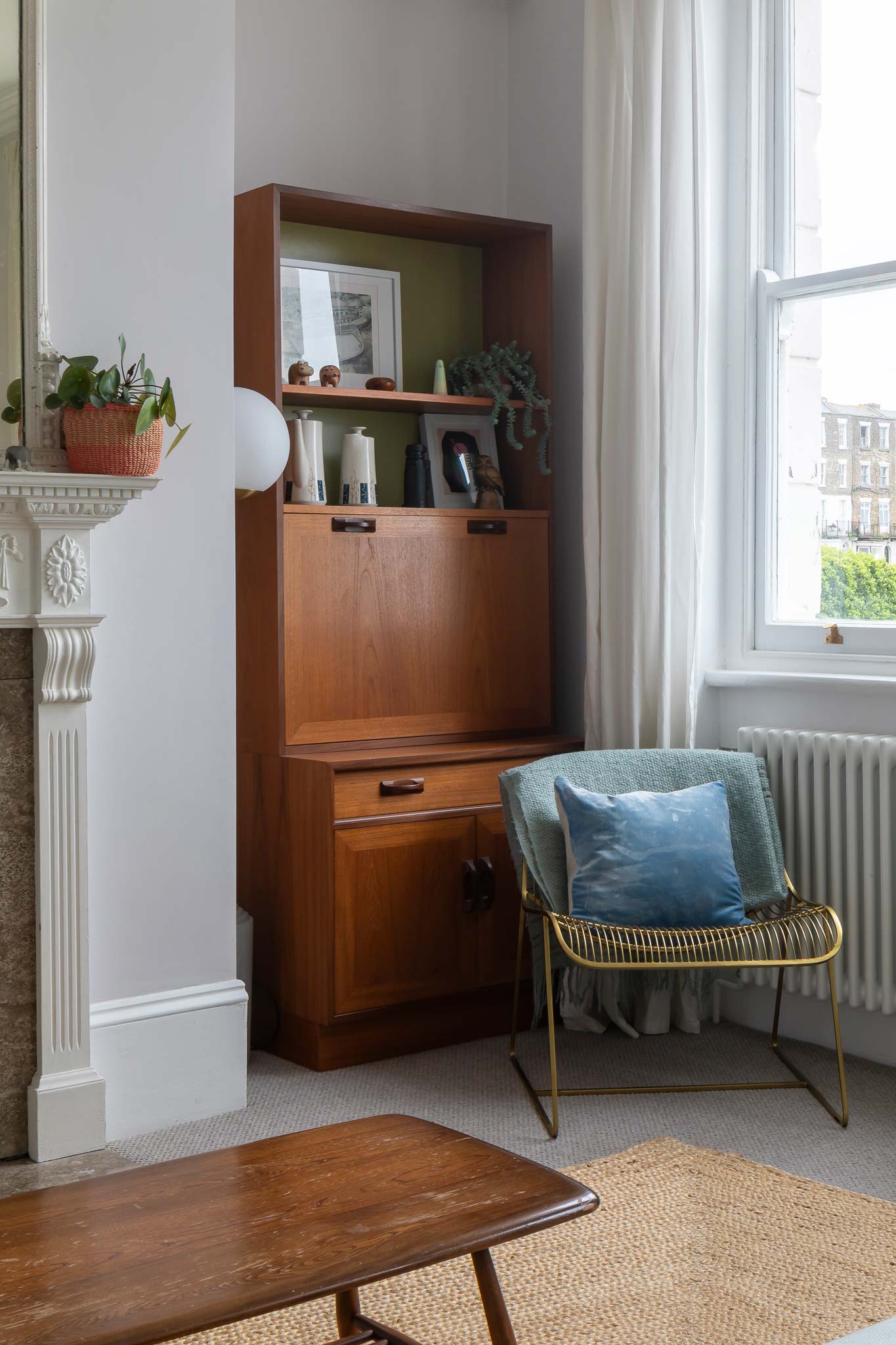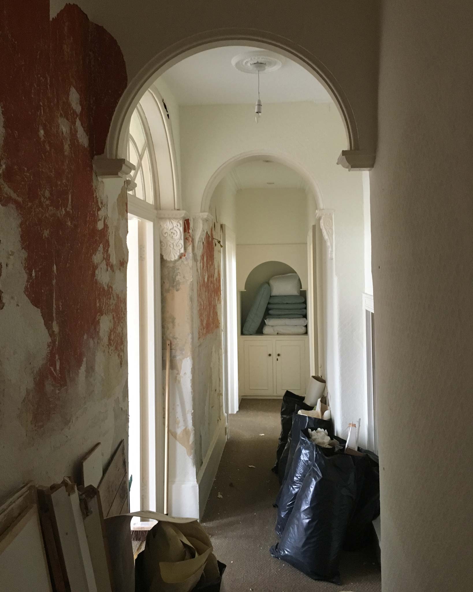 Full refurbishment and reconfiguration of a flat in a beachside Grade II listed block. The kitchen was relocated to the east to enjoy views along the waterfront and morning light, swapping places with bathrooms. The west-facing living room has incredible summer sunsets. The block was originally terraced houses, but in c. 1870s became various hotels and the internal layout was totally changed, with a corridor punched down the middle and a number of original front doors turned into windows. As a result the flats in the building all have very unusual layouts, with no two flats the same.